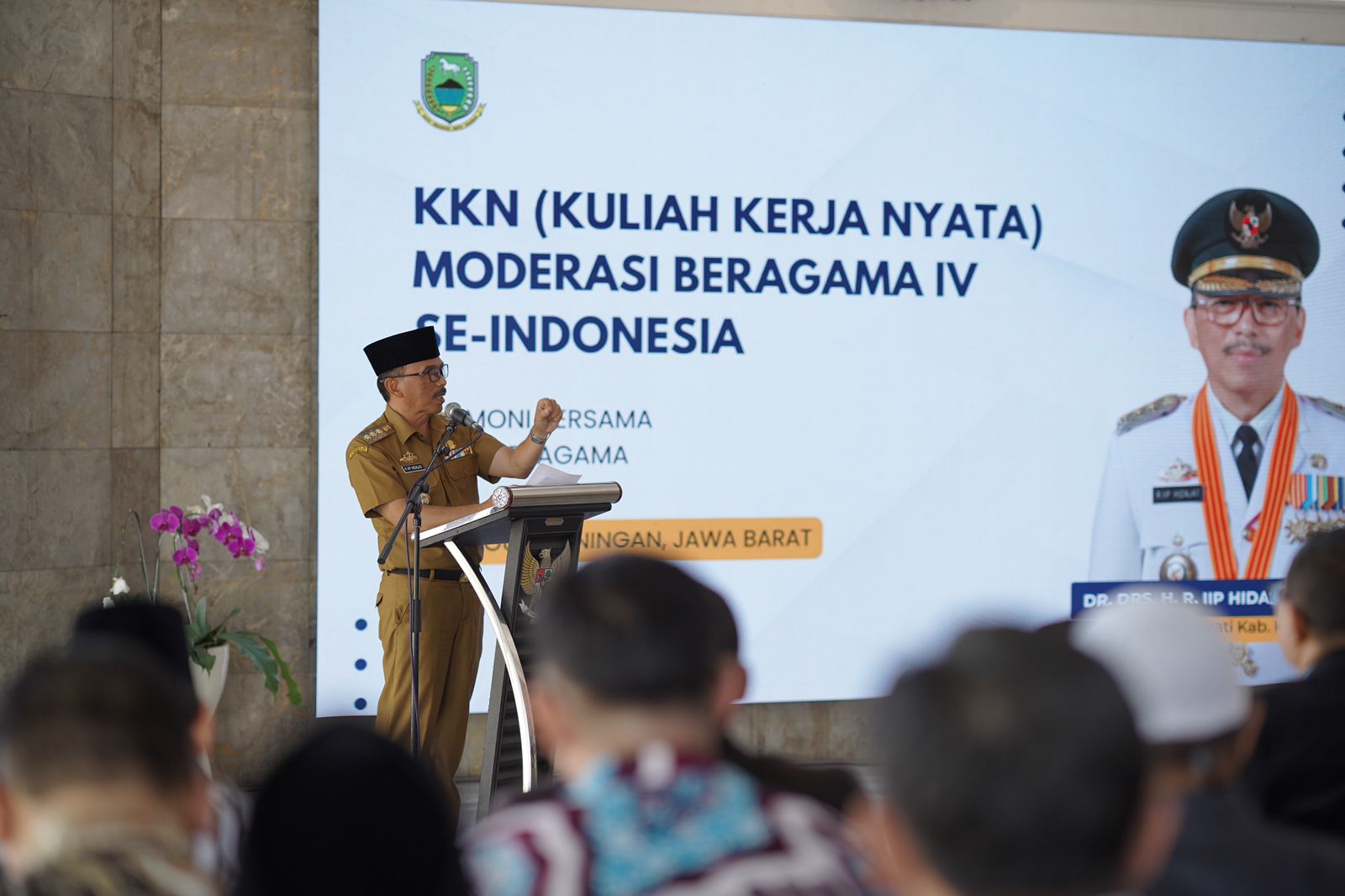 Suatu kepercayaan dan amanat yang berharga, tak lupa dalam sambutannya Rektor UIN Bandung menghaturkan terimakasih kepada Kementerian Agama yang sudah menunjuk UIN Bandung sebagai Penyelenggara KKN Nusantara yang ke IV. juga kepada Pejabat Bupati dan Sekretaris Daerah yang sudah memberikan kami tempat. Kabupaten Kuningan menjadi tempat pertemuan para peserta KKN Moderasi Beragama, Dr. Drs. H. Raden Iip Hidajat, M.Pd selaku penjabat Bupati Kuningan menyambut dengan baik kedatangan peserta KKN dan mengapresiasi setinggi-tingginya dengan memilih Kuningan sebagai tempat KKN Moderasi Beragama.