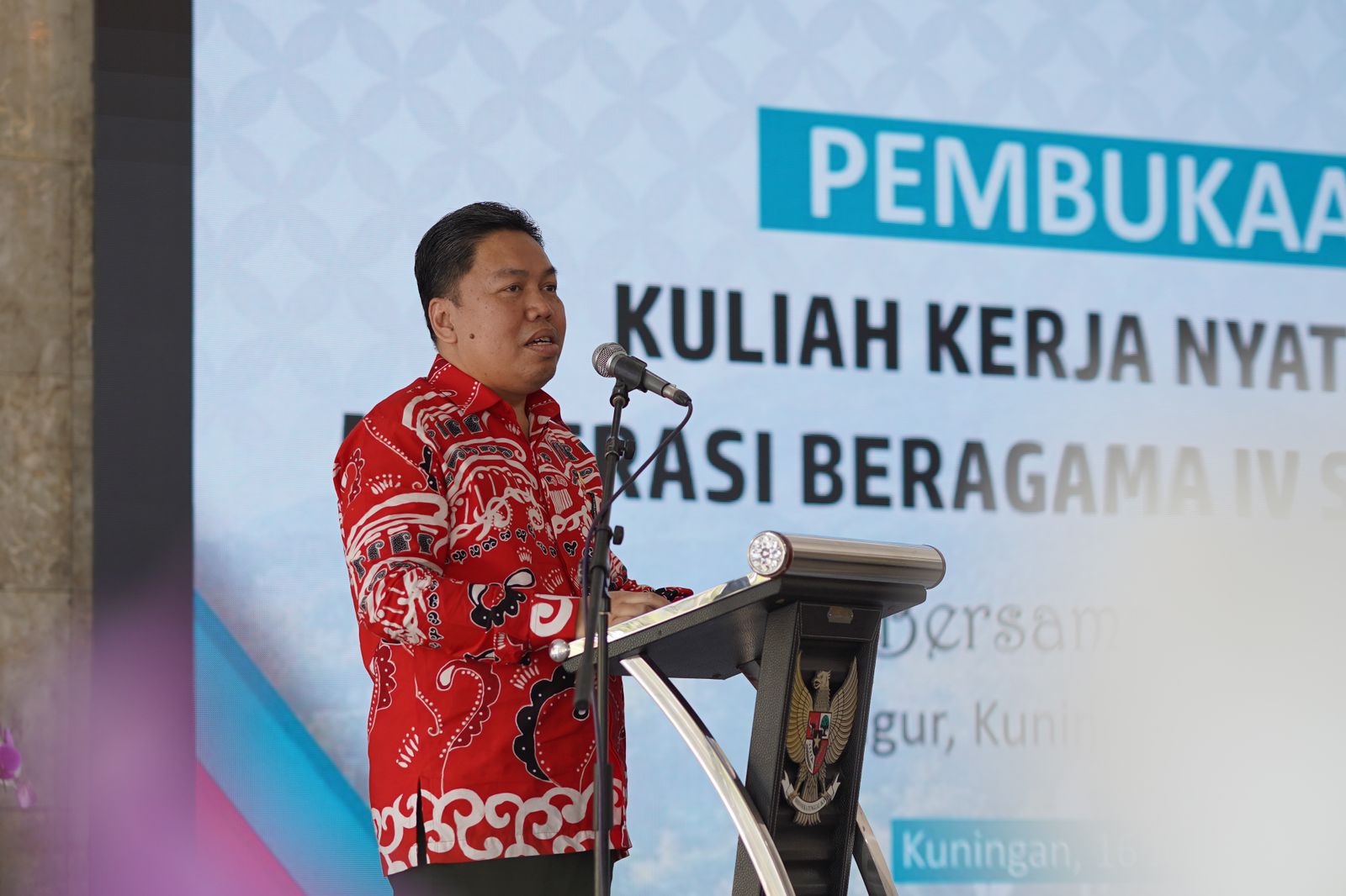 Selain menyambut dengan baik, Penjabat Bupati menghaturkan rasa bangga “Saya sangat bangga ketika mahasiswa dapat terjun secara langsung bagiamana keberagaman, bagaimana rasa toleransi muncul antar masyarakat kuningan, dimana pancasila merupakan pemersatu kita. Kecamatan Cigugur merupakan salah satu wilayah yang mencerminkan toleransi masyarakat yang sangat tinggi, wilayah ini menggambarkan miniatur Indonesia dan miniatur pluralisme di Indonesia. Kecamatan Cigugur yang terletak di kaki gunung ciremai dengan segala kemajemukannya terdiri dari berbagai etnis, suku bangsa dan keyakinan kepercayaan yang hidup dengan simfoni hidup yang rukun,” jelasnya.