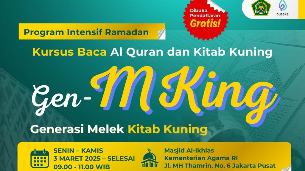 Bagi yang berminat mengikuti Program Intensif Ramadan, pendaftaran dapat dilakukan secara daring melalui laman s.id/gen-m2025. Kemenag mengajak seluruh pihak yang memiliki minat terhadap kajian kitab kuning untuk memanfaatkan kesempatan tersebut.