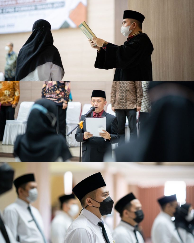 “Saya atas nama Rektor mengucapkan selamat kepada ade-ade yang Allah takdir menjadi bagian keluarga besar UIN Sunan Gunung Djati Bandung baik sebagai dosen maupun tendik. Ini patut disyukuri sebab dari jumlah 1.117 pelamar, disaring, yang hari ini diambil sumpah ASN. Tentunya bukan kebetulan, karena kita ketahui bersama pola penerimaan sekarang terbuka dan tiada ada yang bisa melakukan intervensi, semuanya tergantung pada kemampuan, keahlian saudara-saurada dan takdir Allah SWT,” tegasnya.