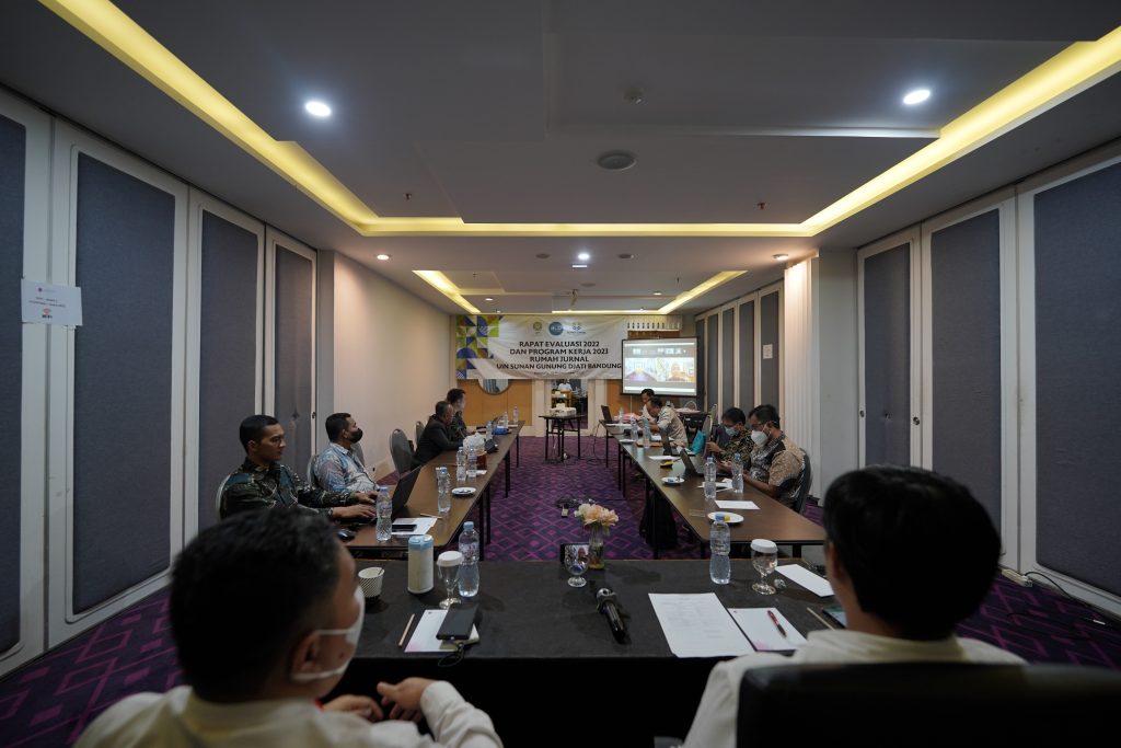 Rapat evaluasi tersebut dihadiri penanggung jawab Rumah Jurnal, Prof. Ahmad Ali Nurdin, MA, Ph.D,, Dr. Wahyudin Darmalaksana, MAg., Dr. Husnul Qodim, MA., Dr. Ade Yeti Nuryantini, S.Pd., MM.Pd., Koordinator Rumah Jurnal, Hamdan Sugilar, MPd., Sentra Publikasi, Ferli Septi Irwansyah, M.Si., Sentra Jurnal, Busro, S.Ud., M.Ag., Sentra Kelas Penulisan, Dian Sa’adilah Maylawati, MT., dan Sentra Sinta, Ali Rahman, ST., M.Kom.