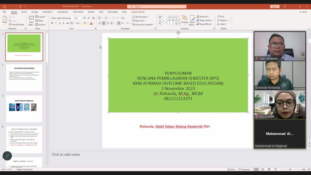 (UINSGD.AC.ID) — Fakultas Ekonomi dan Bisnis Islam (FEBI) UIN Sunan Gunung Djati Bandung menyelenggarakan kegiatan di bidang akademik dan kurikulum yang bertema “Penguatan Kapasitas Dosen dalam Penyusunan Rencana Kegiatan dan Pembelajaran Semester Outcome-Based Education (RKPS OBE)” secara daring, Kamis (2/11/2023).