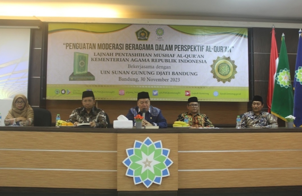 (UINSGD.AC.ID) — Upaya mewujudkan kehidupan beragama di Jawa Barat yang moderat, adil, rukun, Rumah Moderasi Beragama (RMB) UIN Sunan Gunung Djati Bandung menggelar Diskusi Buku bertajuk Penguatan Moderasi Beragama dalam Perspektif Al-Quran yang berlangsung di Aula Fakultas Ushuluddin Lantai IV, Kamis (30/11/2023).