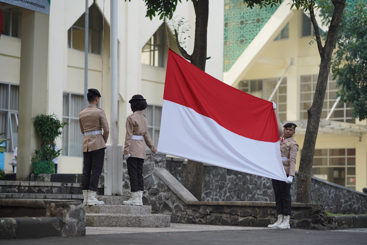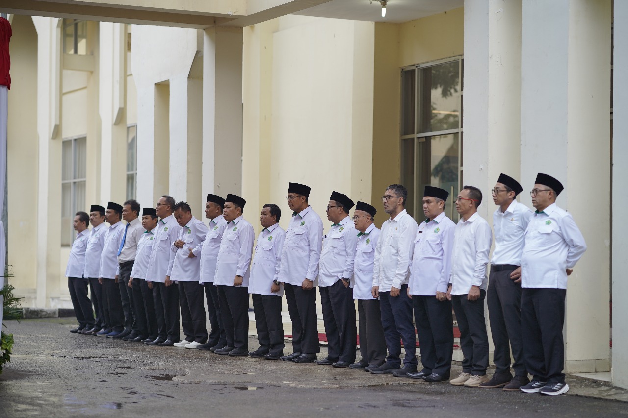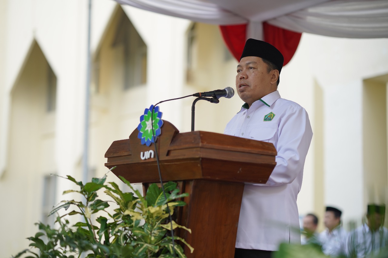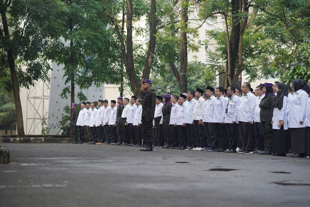 Suasana apel berlangsung khidmat dengan dihadiri berbagai unsur dan Rektor UIN Sunan Gunung Djati Bandung, Prof. Dr. H. Rosihon Anwar, M.Ag. bertindak sebagai pembina upacara.