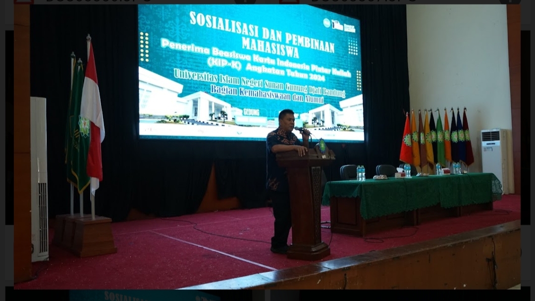 UINSGD.AC.ID (Humas) — Bagian Kemahasiswaan dan Alumni UIN Sunan Gunung Djati Bandung menggelar Sosialisasi dan Pembinaan Mahasiswa Penerima Beasiswa Kartu Indonesia Pintar Kuliah (KIP-K) Angkatan Tahun 2024 di Gedung Anwar Musaddad, Rabu (23/10/2024).