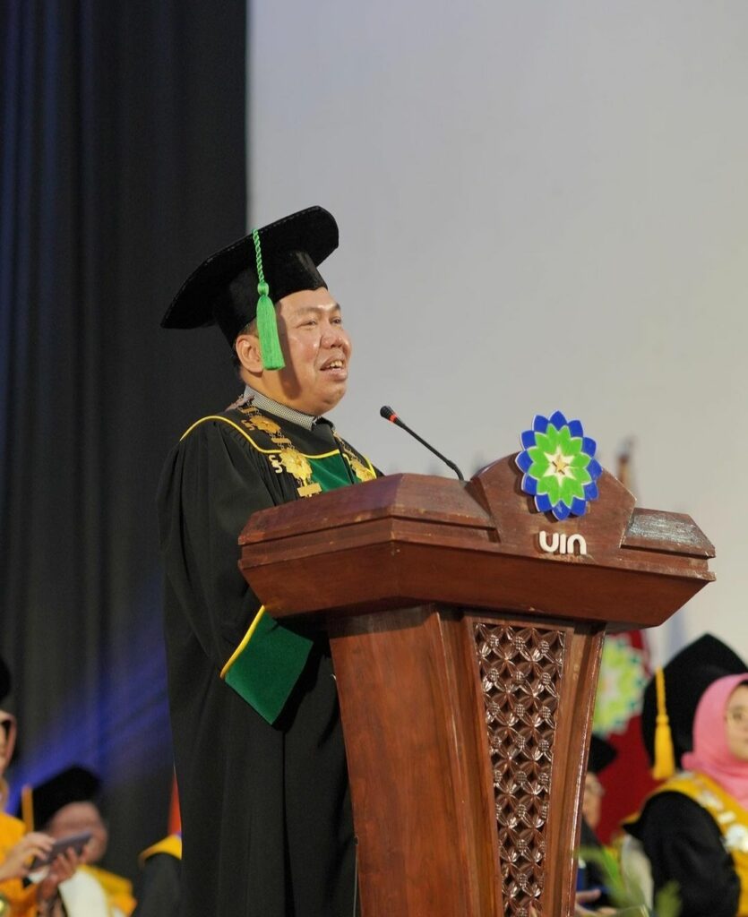 “Untuk Bupati Kabupaten Bandung, Dr. H. M. Dadang Supriatna, S.I.P., M.Si., bersama Marsekal Pertama TNI Engkus Kuswara, S.I.P., M. Tr (Han), Kepala Kelompok Staf Ahli Komando Pembinaan Doktrin, Pendidikan dan Latihan Angkatan Udara., Dekan Fakultas Tarbiyah UIN Purwokerto, mereka hadir sebagai undangan orangtua yang membersamai anaknya dalam proses wisuda. Sebagai bentuk penghormatan kepada para tamu, yang juga kebetulan pejabat. Caranya dengan memulai tamu yang menempatkan mereka bersama jajaran pimpinan di lingkungan UIN Sunan Gunung Djati Bandung,” pungkasnya. (Anisa Hanifah/Magang)