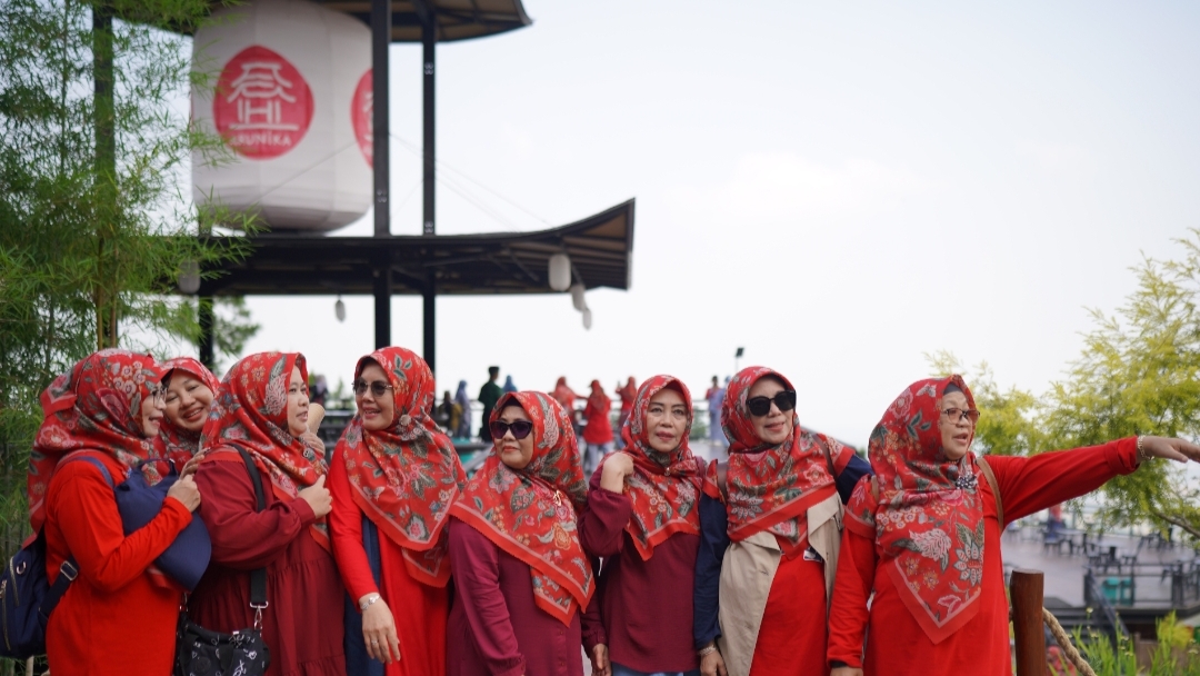 Dari pukul 13.00 hingga 14.30, rombongan wisatawan tampak asyik berfoto di berbagai spot Instagramable sambil menikmati camilan dan minuman khas Nusantara maupun Jepang.