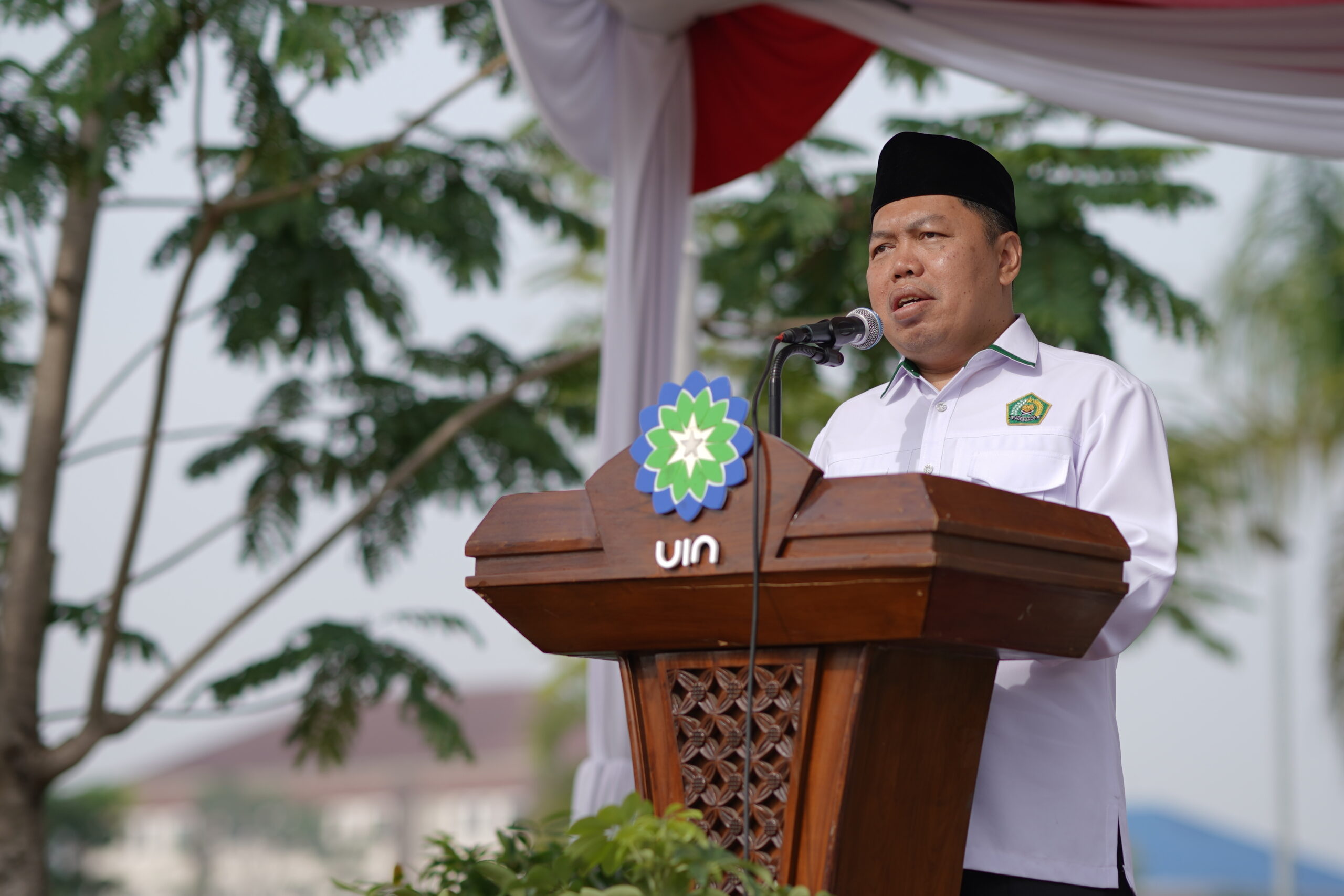 Suasana apel berlangsung khidmat dengan dihadiri berbagai unsur dan Rektor UIN Sunan Gunung Djati Bandung, Prof. Dr. H. Rosihon Anwar, M.Ag. sebagai pembina upacara.