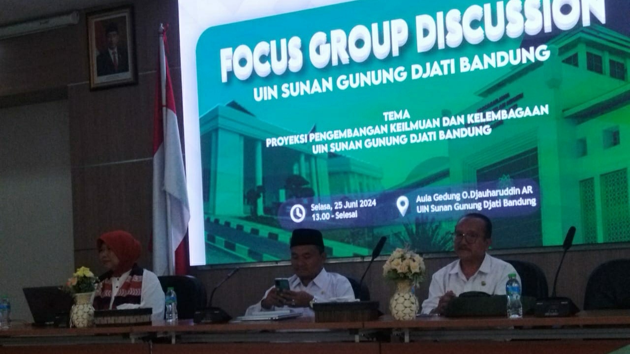 UINSGD.AC.ID (Humas) — Konsorsium Keilmuan Wahyu Memandu Ilmu (WMI) Universitas Islam Negeri (UIN) Sunan Gunung Djati Bandung menggelar Focus Group Discussion (FGD) bertajuk “Proyeksi Pengembangan Keilmuan dan Kelembagaan” yang berlangsung di Gedung O. Djauharudin AR, Selasa (25/6/2024).