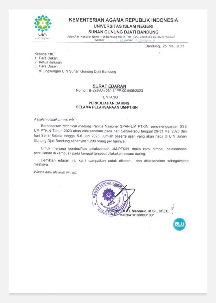 Untuk mengetahui Surat Perkuliahan Daring Selama Pelaksanaan UM-PTKIN 2023