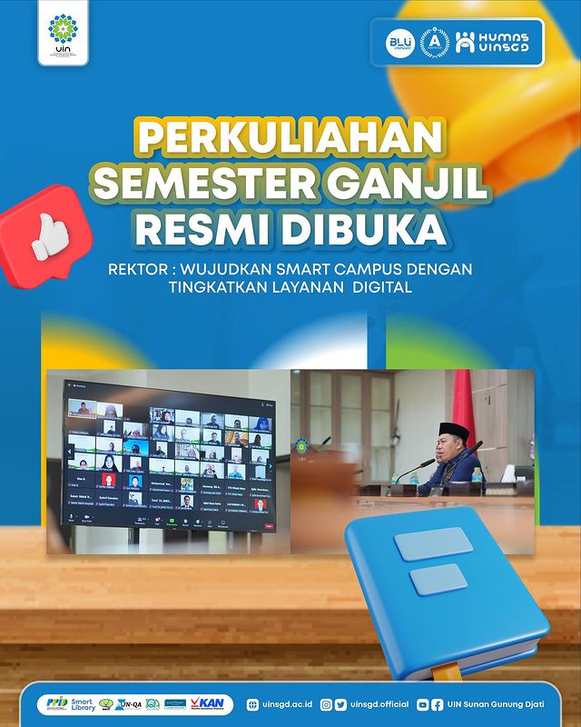 (UINSGD.AC.ID)-Jelang proses perkuliahan, UIN Sunan Gunung Djati Bandung menggelar Pembukaan Perkuliahan Semester Ganjil Tahun Akademik 2023/2024 yang dilakukan secara hybrid: online melalui zoom meeting dan offline di Gedung O. Djauharuddin AR, Kamis (31/8/2023).