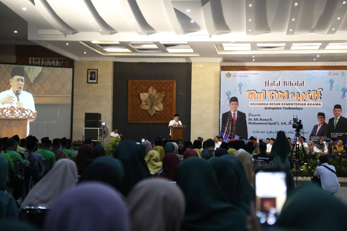 Sebelumnya, Kepala Kankemenag Kabupaten Tasikmalaya Dudu Rohman menyampaikan selamat datang kepada Wamenag dan Kepala Kanwil Kemenag Jabar. Ia berharap kegiatan Halal Bihalal ini mempererat kebersamaan dan solidaritas antar pegawai, serta memotivasi peningkatan pelayanan kepada masyarakat pasca-Ramadhan. Dudu juga menekankan tujuan acara ini untuk memperkuat kekompakan seluruh 2.535 pegawai Kemenag Kabupaten Tasikmalaya.