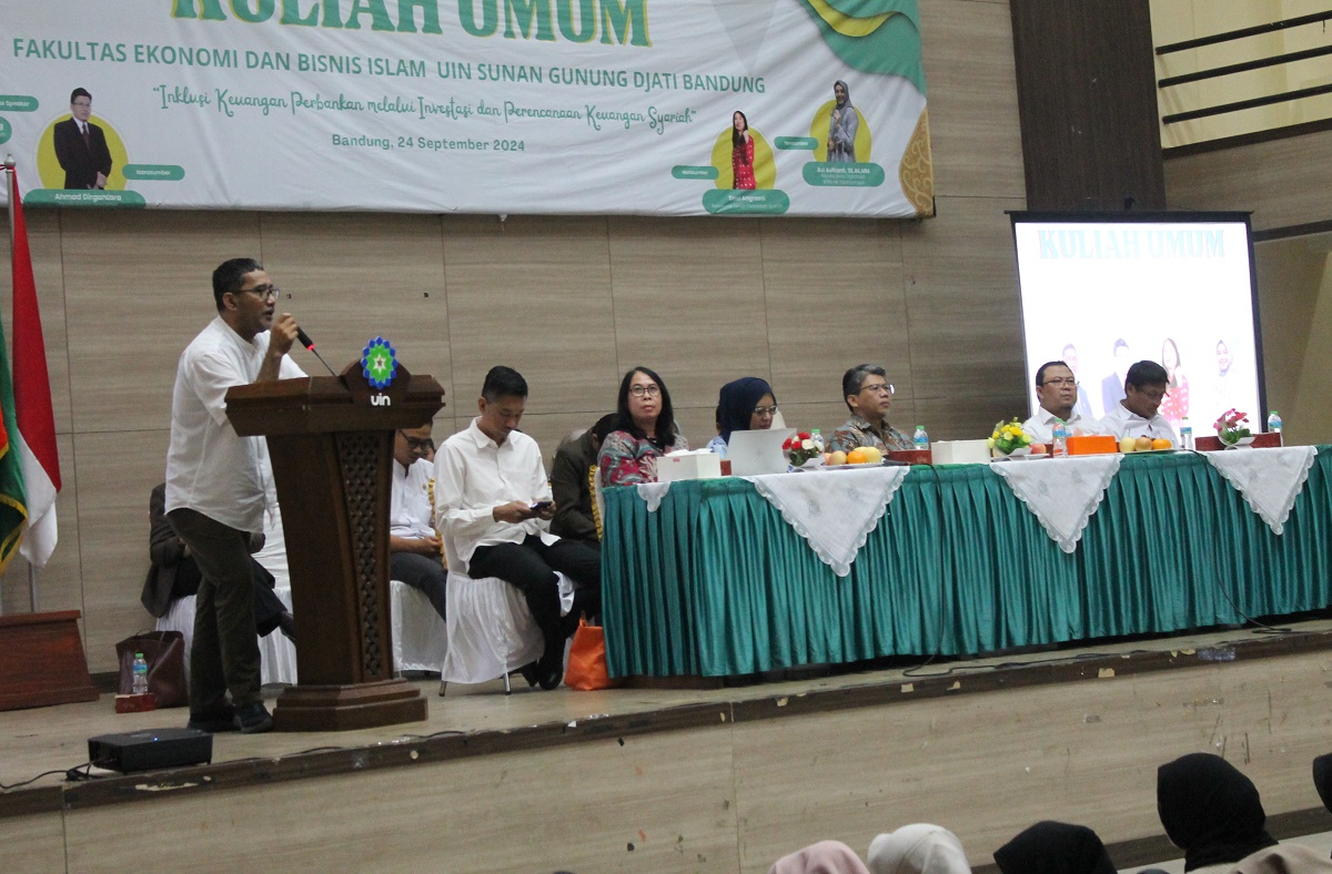 Acara yang bertajuk “Inklusi Keuangan Perbankan melalui Investasi dan Perencanaan Keuangan Syariah”, menghadirkan pemateri: Dewi Angraeni (Pengawas Senior Perbankan Syariah, OJK Jawa Barat), Achmad Dirgantara (Kepala Bursa Efek Indonesia/BEI Jawa Barat), dan Avi Avitianti (Kepala Divisi Digitalisasi BPRS HIK Parahyangan).
