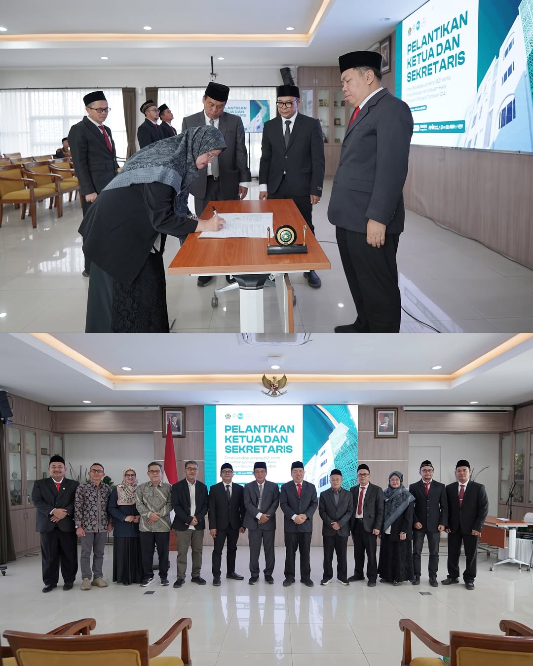 Empat pejabat yang dilantik itu Ketua Prodi Sosiologi S2, Dr. Dede Syarif, S.Sos., M.Ag., Sekretaris Dr. Endah Ratna Sonya, S.Sos., M.Si.; Ketua Prodi Manajemen Industri Halal (D4),