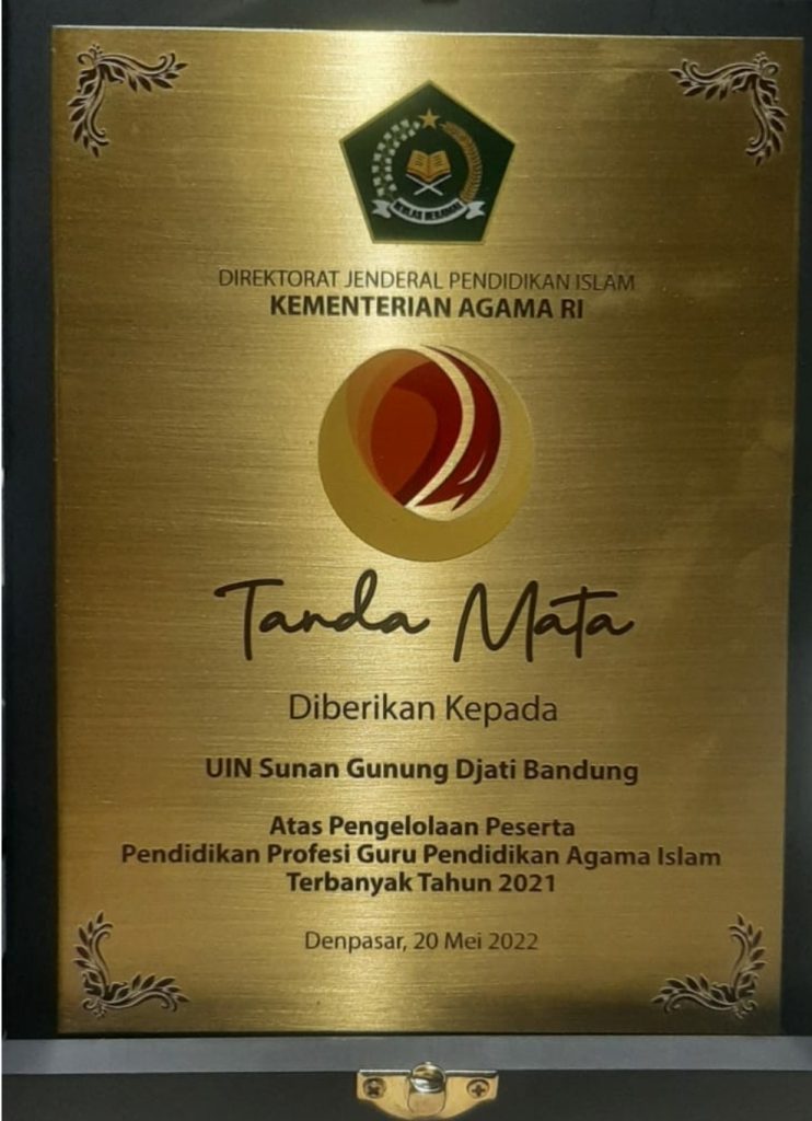 (UINSGD.AC.ID)-Dalam rangka memperingati Hari Kebangkitan Nasional (Harkitnas) tahun 2022, Rektor UIN Sunan Gunung Djati Bandung, Prof. Dr. H. Mahmud MSi., CSEE menerima penghargaan Tanda Mata dari Kementerian Agama atas pengelolaan peserta Pendidikan Profesi Guru (PPG) Pendidikan Agama Islam terbanyak tahun 2021.
