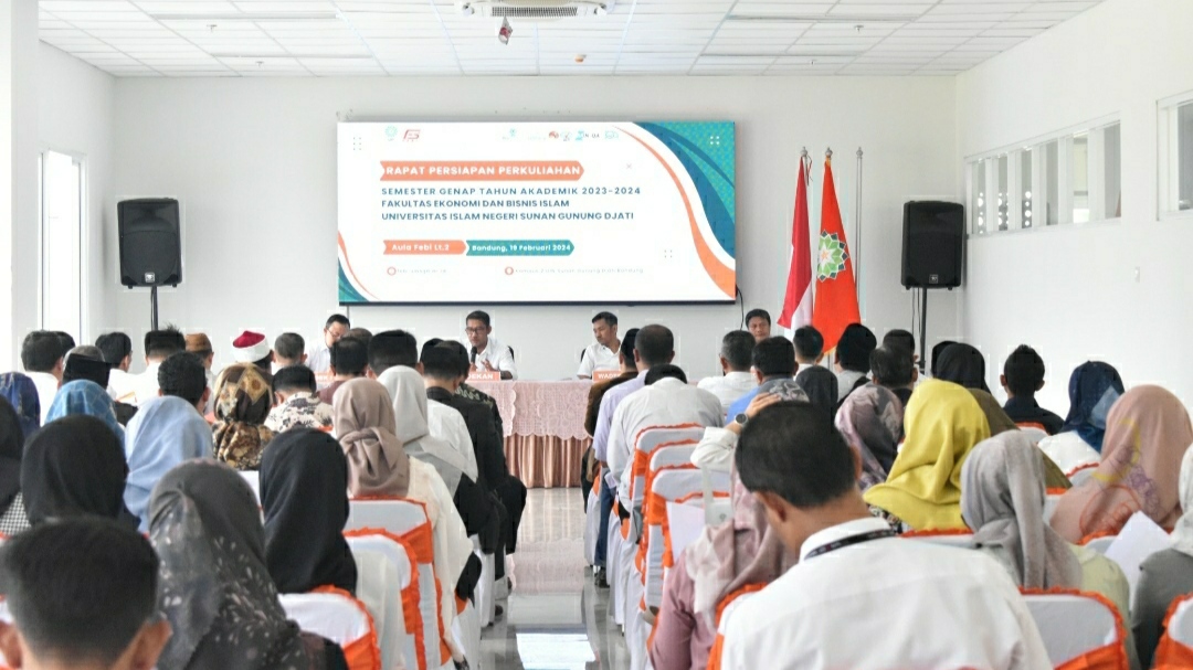 UINSGD.AC.ID (Kampus II) — Fakultas Ekonomi dan Bisnis Islam (FEBI) UIN Sunan Gunung Djati Bandung menggelar rapat persiapan perkuliahan di Aula FEBI UIN Bandung, Senin, (19/2/2024).