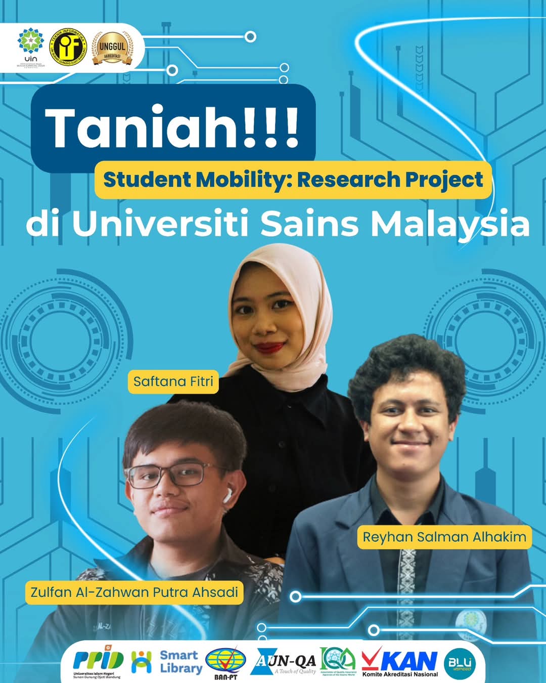 UINSGD.AC.ID (Humas) — Prestasi membanggakan kembali diraih oleh tiga mahasiswa UIN Sunan Gunung Djati Bandung Jurusan Teknik Informatika, Fakultas Sains dan Teknologi (FST) berhasil lolos dalam program Student Mobility: Research Project yang diselenggarakan di Universiti Sains Malaysia (USM).