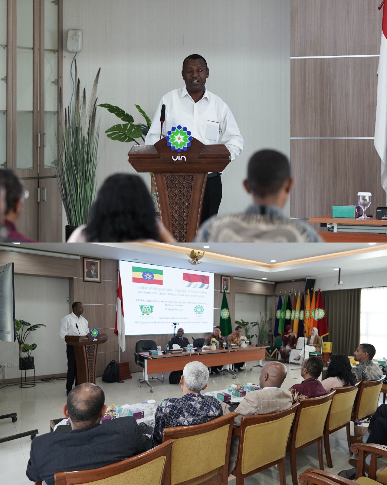 Dengan menghadirkan narasumber: Prof. Dr. H. Ahmad Ali Nurdin, PhD (Dekan Fakultas Ilmu Sosial dan Ilmu Politik), H. Fakry Ramdani, PhD (Dekan Fakultas Tarbiyah dan Keguruan), Teshite Gudeta Guye (Vice President for Academic Affairs), Babiso Gemechu Herefa (Vice President for Student Affairs) yang dipandu oleh Kepala Pusat Internasional Office, Dr Munir, MA.