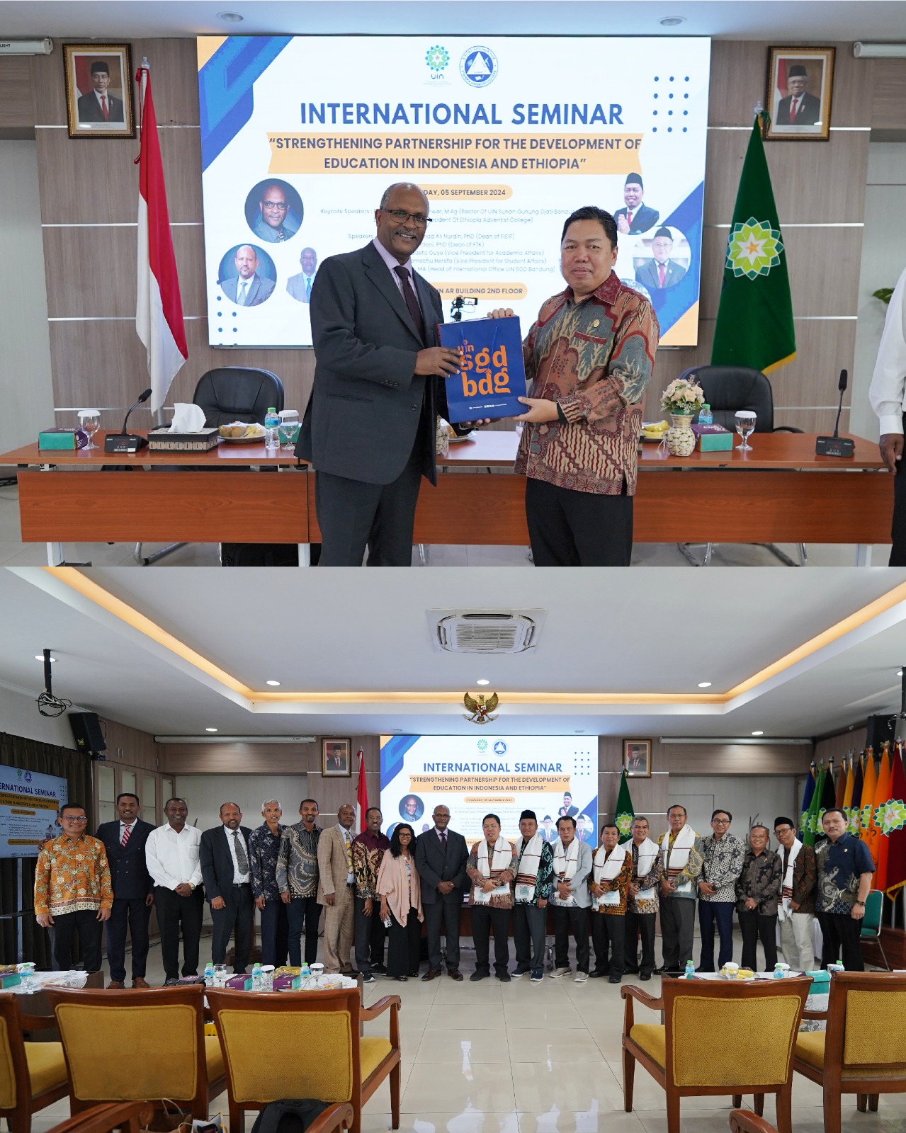 UINSGD.AC.ID (Humas) — Upaya mewujudkan kampus unggul berbasis rahmatan lil alamin, UIN Sunan Gunung Djati menggelar Seminar Internasional bertajuk memperkuat kemitraan untuk pengembangan pendidikan di Indonesia dan Ethiopia yang berlangsung di Gedung O. Djauharuddin AR, Kamis (5/9/2024).
