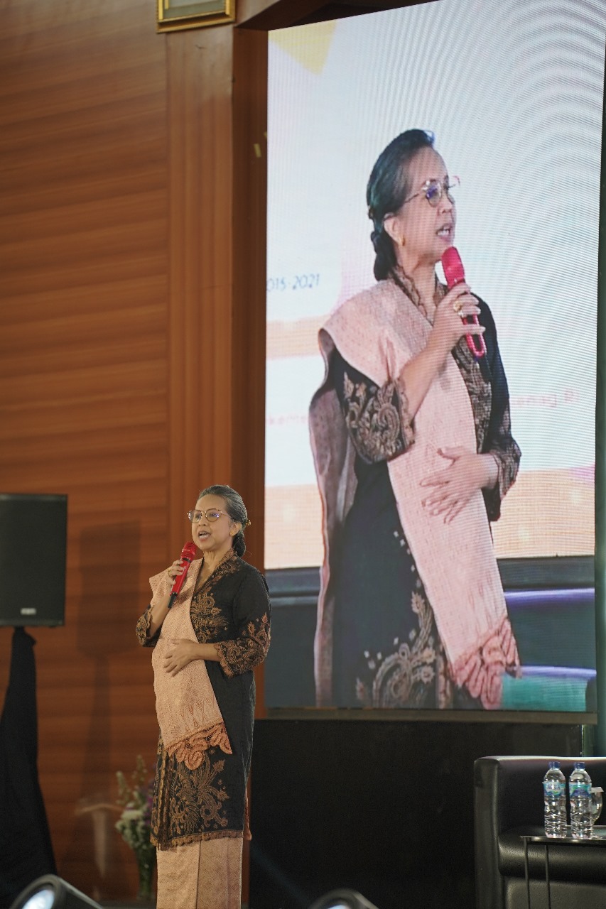 Dalam sambutannya, Hj. Eny Retno Yaqut menyampaikan harapan agar seminar ini dapat memberikan manfaat dan ilmu kepada seluruh anggota DWP yang hadir serta menjadi pertemuan terakhirnya sebagai Penasihat DWP Kemenag RI.