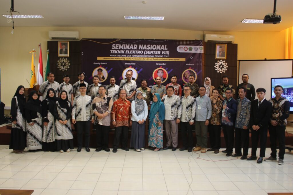 (UINSGD.AC.ID) — Jurusan Teknik Elektro UIN Sunan Gunung Djati Bandung menggelar Seminar Nasional Teknik Elektro (Senter VIII) 2023 bertajuk “Named Data Networking (NDN) Pendekatan Baru untuk Desain Arsitektur Internet Masa Depan” di Aula Fakultas Sains dan Teknologi UIN Sunan Gunung Djati Bandung, Kamis (26/10/2023).