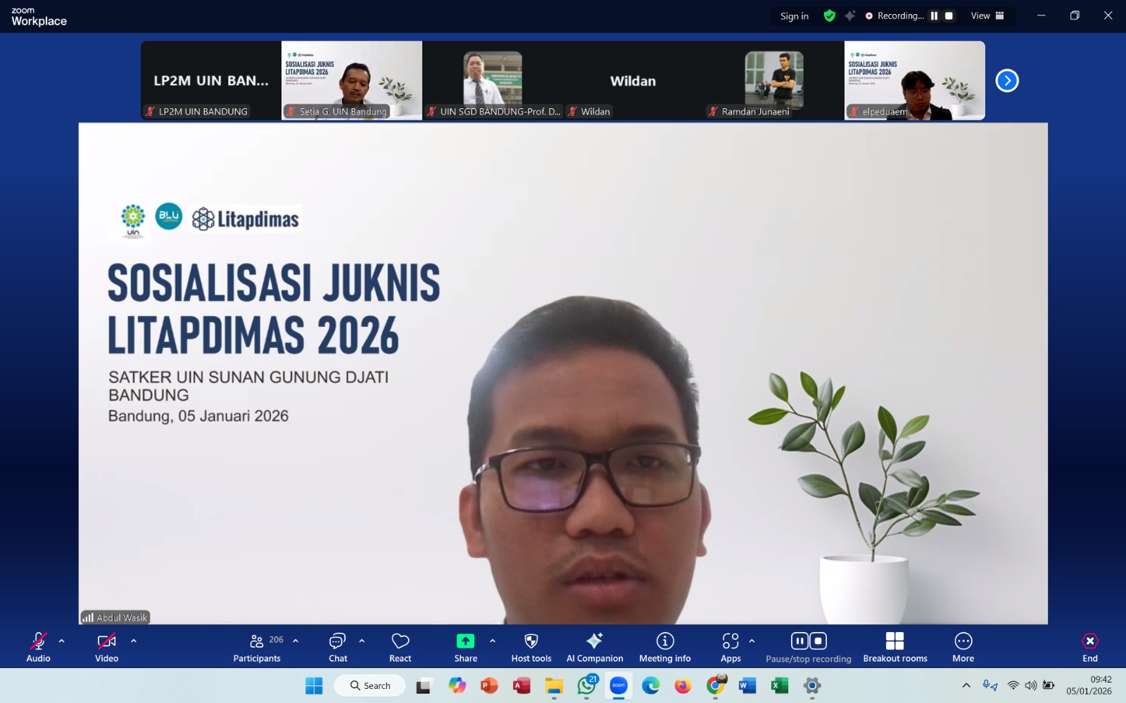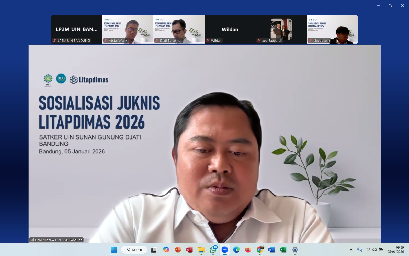UIN Sunan Gunung Djati Bandung menggelar Sosialisasi Petunjuk Teknis (Juknis) Litapdimas Tahun 2026 bagi seluruh satuan kerja (satker), Senin (5/1/2026). Kegiatan yang dilaksanakan secara daring melalui Zoom Meeting ini diikuti oleh pimpinan, dosen, pengelola penelitian dan pengabdian kepada masyarakat di lingkungan UIN Bandung.
