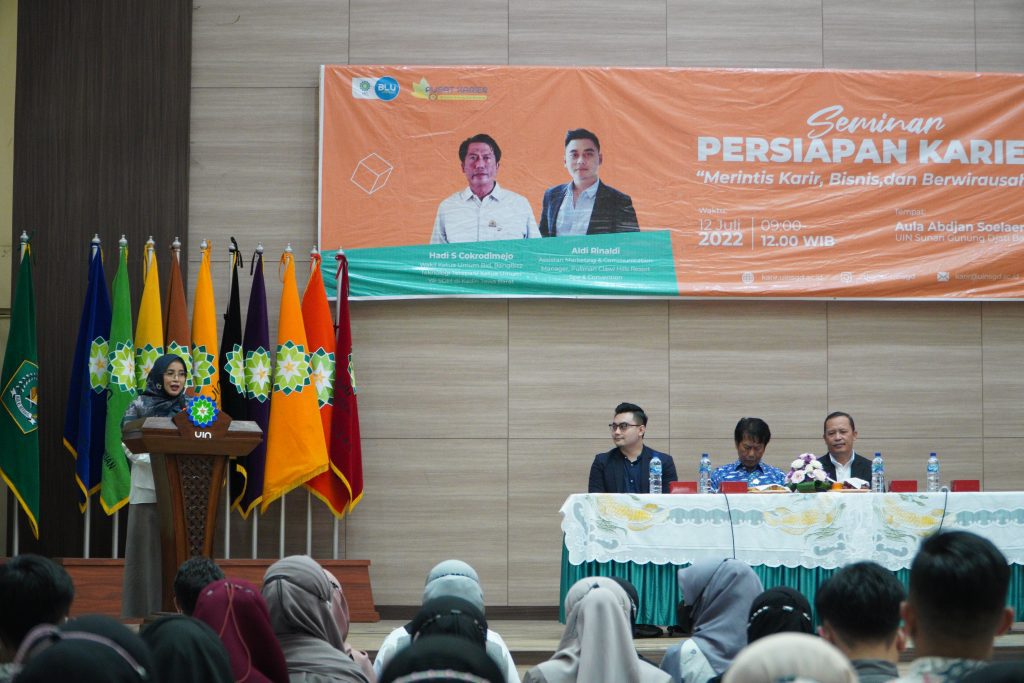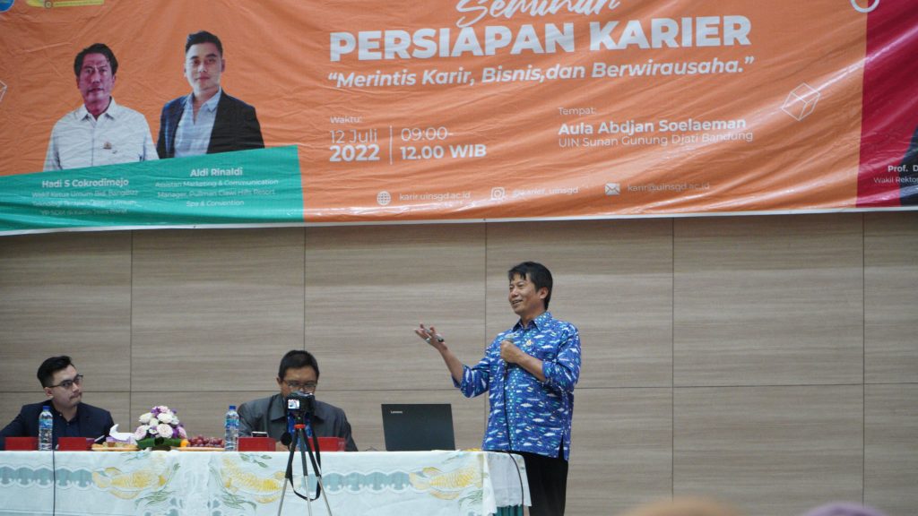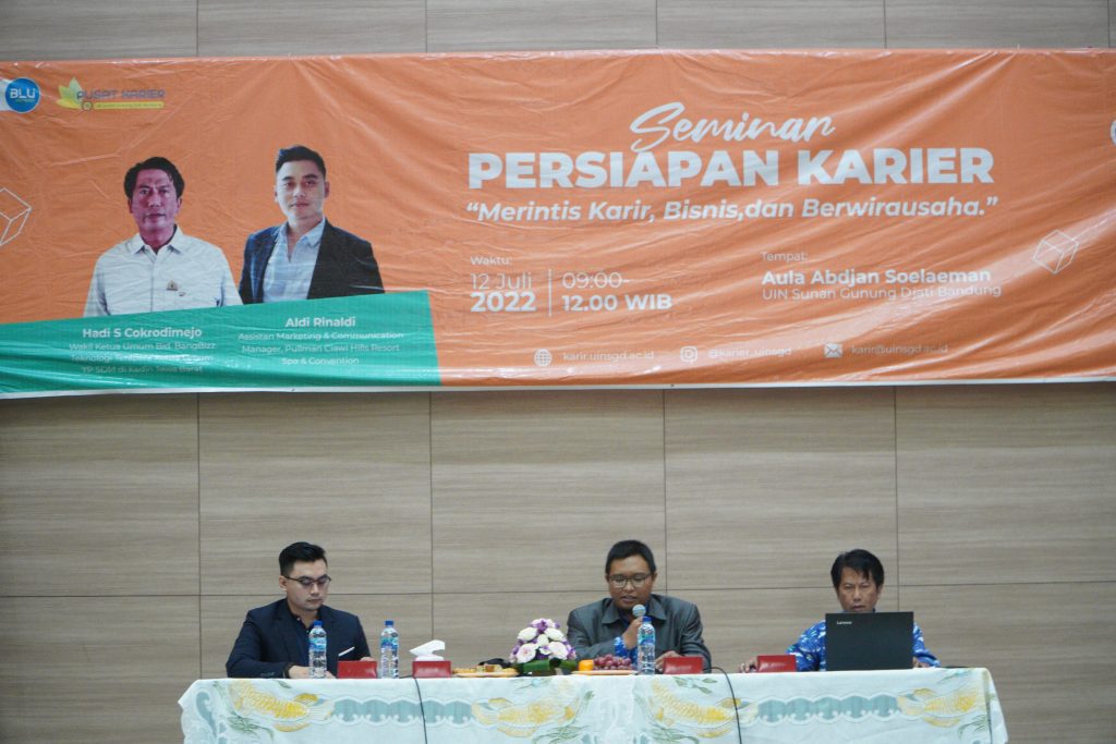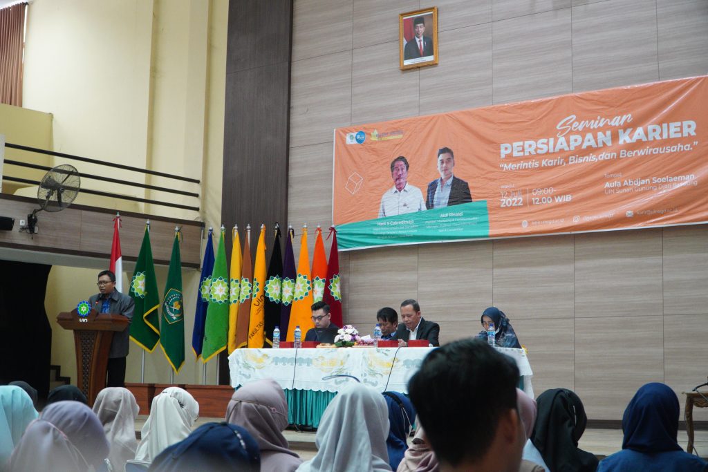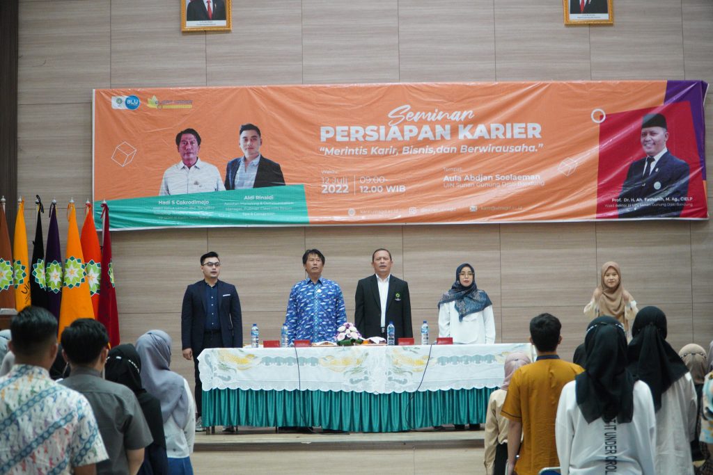 (UINSGD.AC.ID)-Unit Pelaksana Teknis Pusat Karier UIN Sunan Gunung Djati Bandung menggelar Seminar Persiapan Karier bertajuk Merintis Karir, Bisnis dan Berwirausaha yang dibuka oleh Wakil Rektor III, Prof Ah Fathonih MAg, di Aula Abdjan Soelaeman, Selasa (12/07/2022).