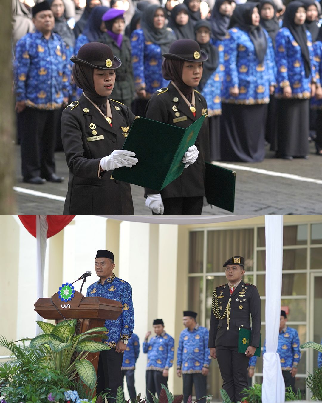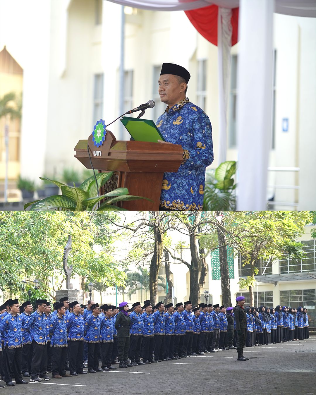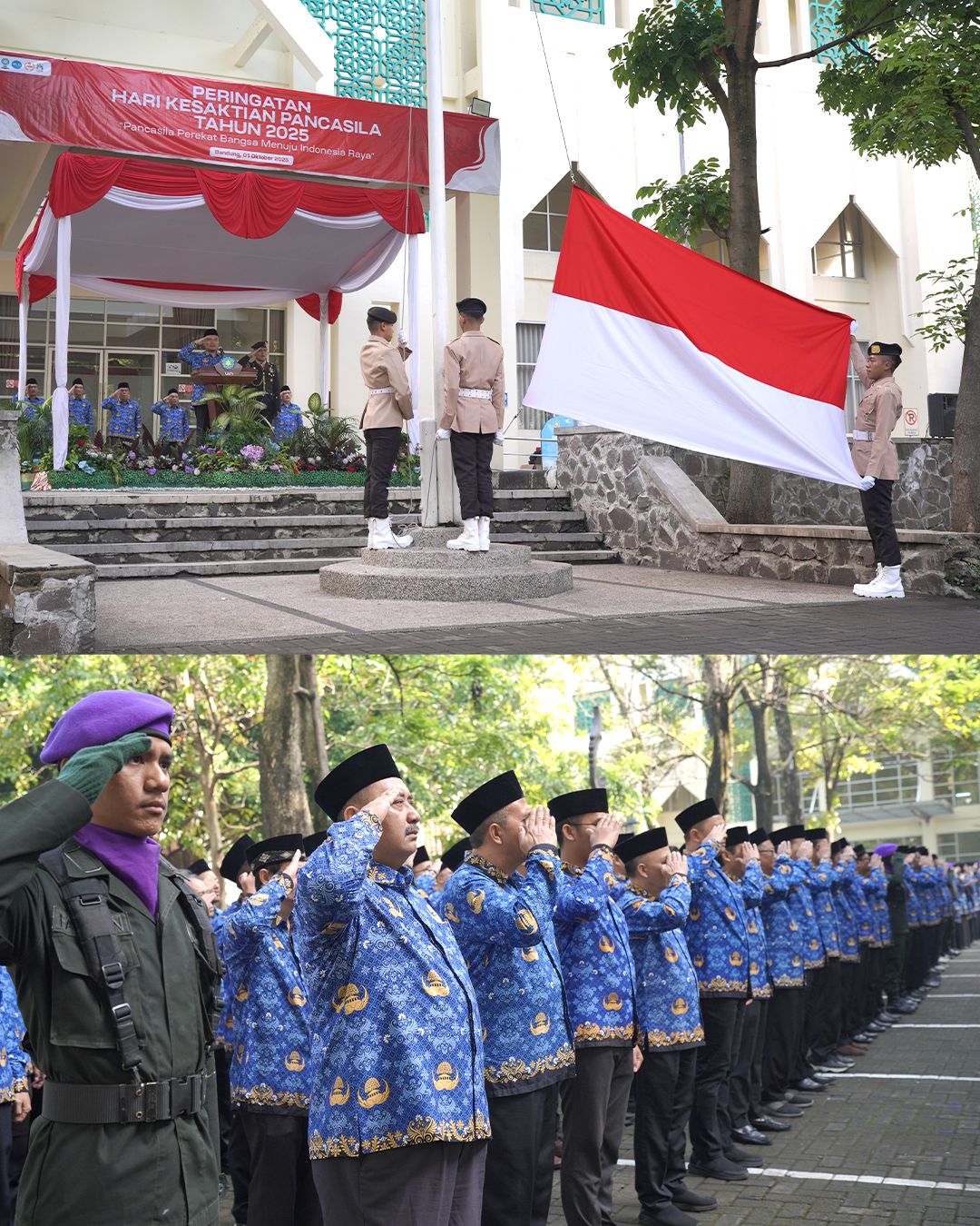 Hadir dalam upacara itu jajaran pimpinan universitas. Wakil Rektor I UIN Sunan Gunung Djati Bandung, Prof. Dr. H. Dadan Rusmana, M.Ag., bertindak sebagai pembina upacara dan memimpin pembacaan Ikrar Hari Kesaktian Pancasila 2025.