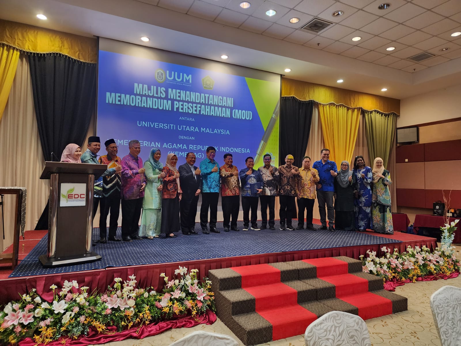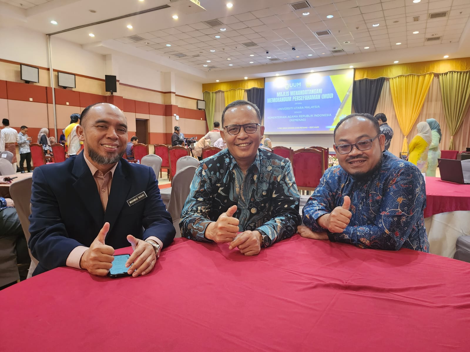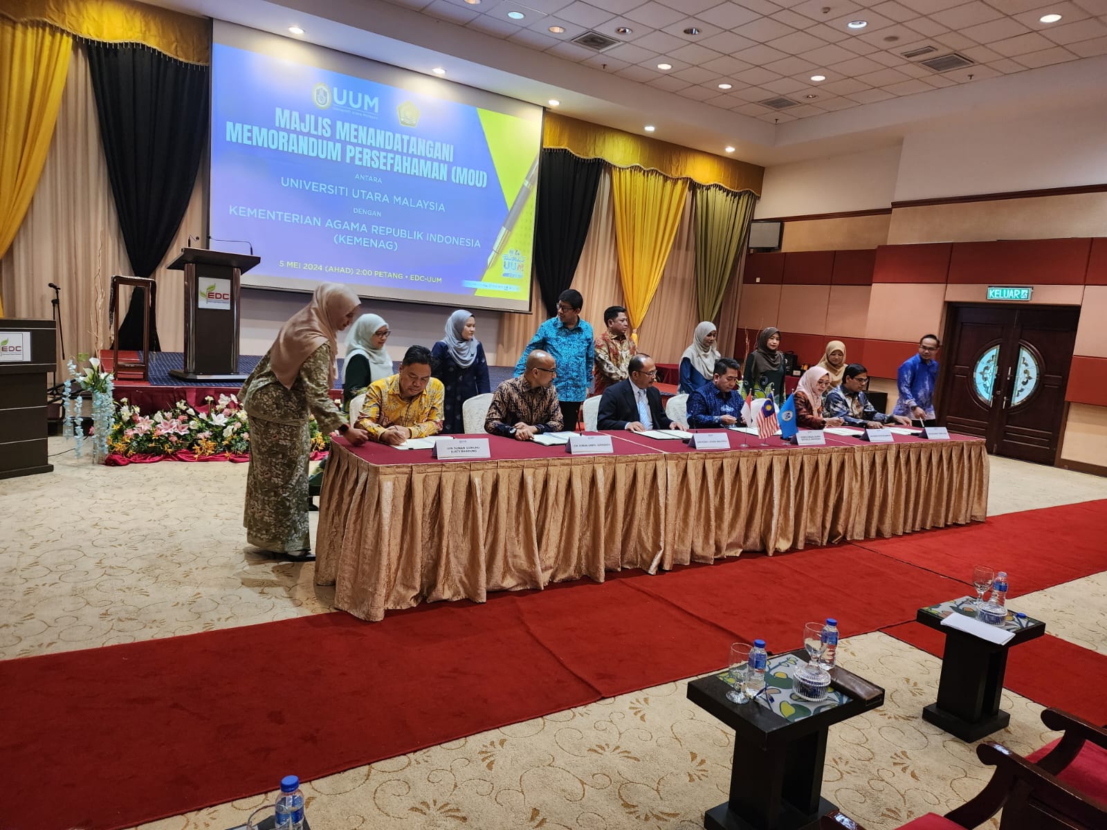 Rektor UIN Bandung yang disaksikan Sekjen Kemenag, Direktur Diktis dan pejabat Kementerian Pendidikan Malaysia tandatangani MoU dengan UUM terkait program double degree untuk Strata 2 (Magister) pada 4 Program Studi (Prodi) yang ada di Pascasarjana UIN Bandung.