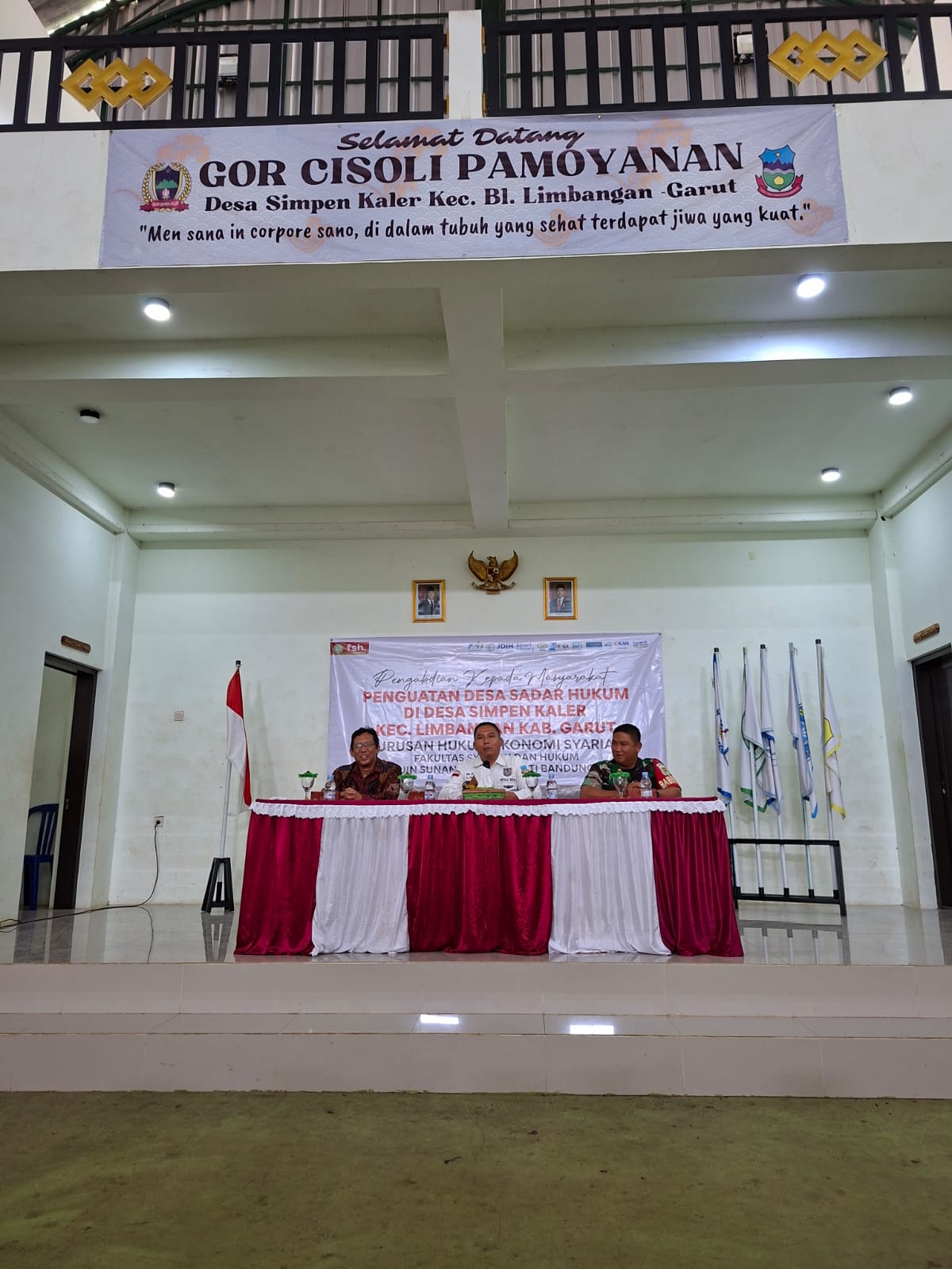 Dengan menghadirkan narasumber Prof. Dr. H. M. Anton Athoillah, MM (Guru Besar FSH), Dr. Hj. Neni Nuraeni, M.Ag (Dosen HES), yang dipandu oleh H. M. Asro, MH (Sekretaris Jurusan HES). Hadir pula perangkat desa, tokoh masyarakat, dosen, pimpinan Fakultas (Wakil Dekan II) perwakilan perempuan, serta warga Desa Simpen Kaler.