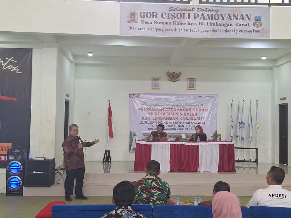UINSGD.AC.ID (Humas) – Dalam upaya meningkatkan literasi hukum dan memperkuat peran kampus dalam pemberdayaan masyarakat, Jurusan Hukum Ekonomi Syariah (HES), Fakultas Syariah dan Hukum (FSH) UIN Sunan Gunung Djati Bandung menggelar Pengabdian kepada Masyarakat (PkM) bertajuk Penguatan Desa Sadar Hukum yang berlangsung di GOR Cisoli Pamoyanan Desa Simpen Kaler, Kecamatan Limbangan, Kabupaten Garut, Rabu (19/11/2025).