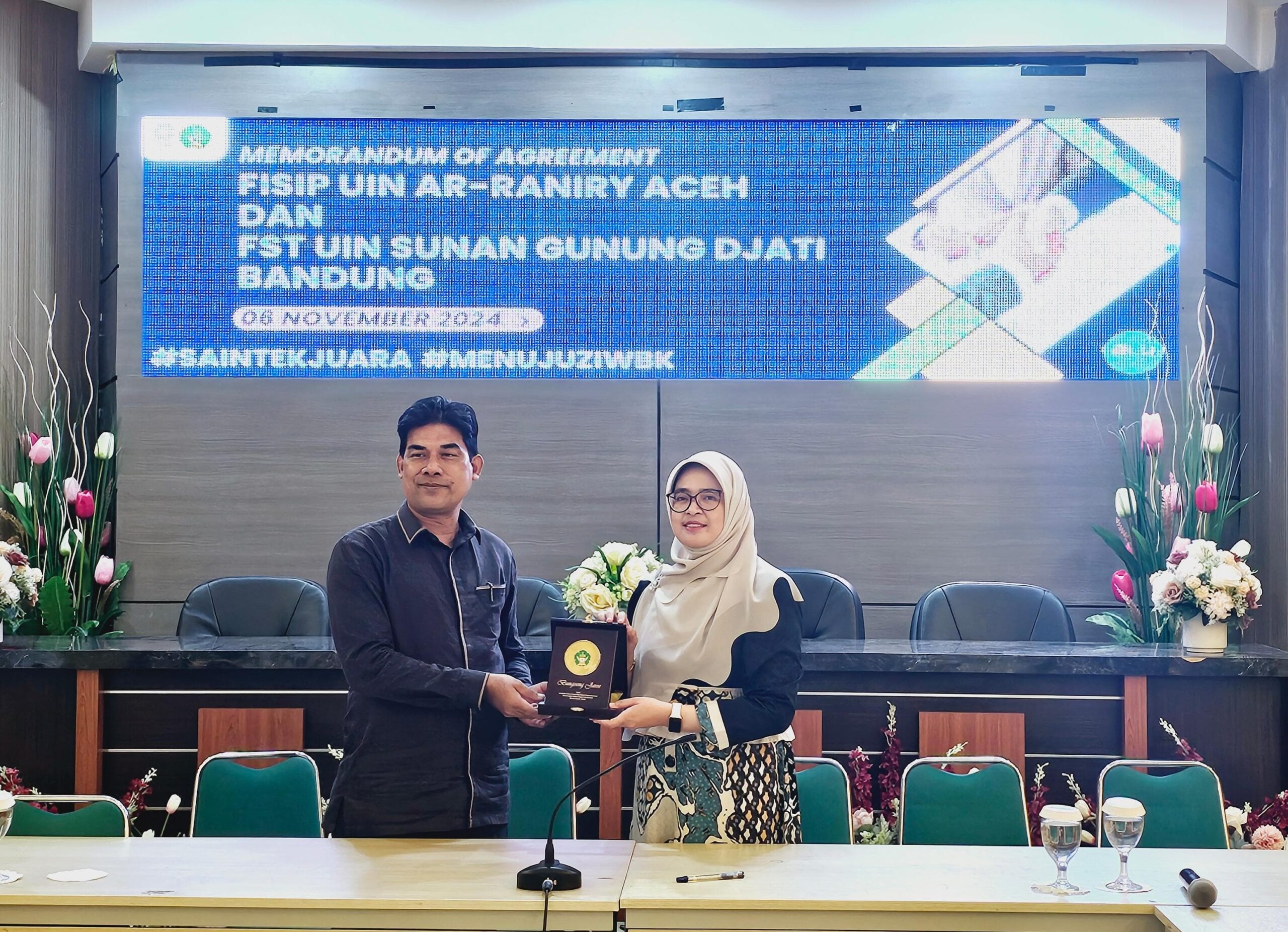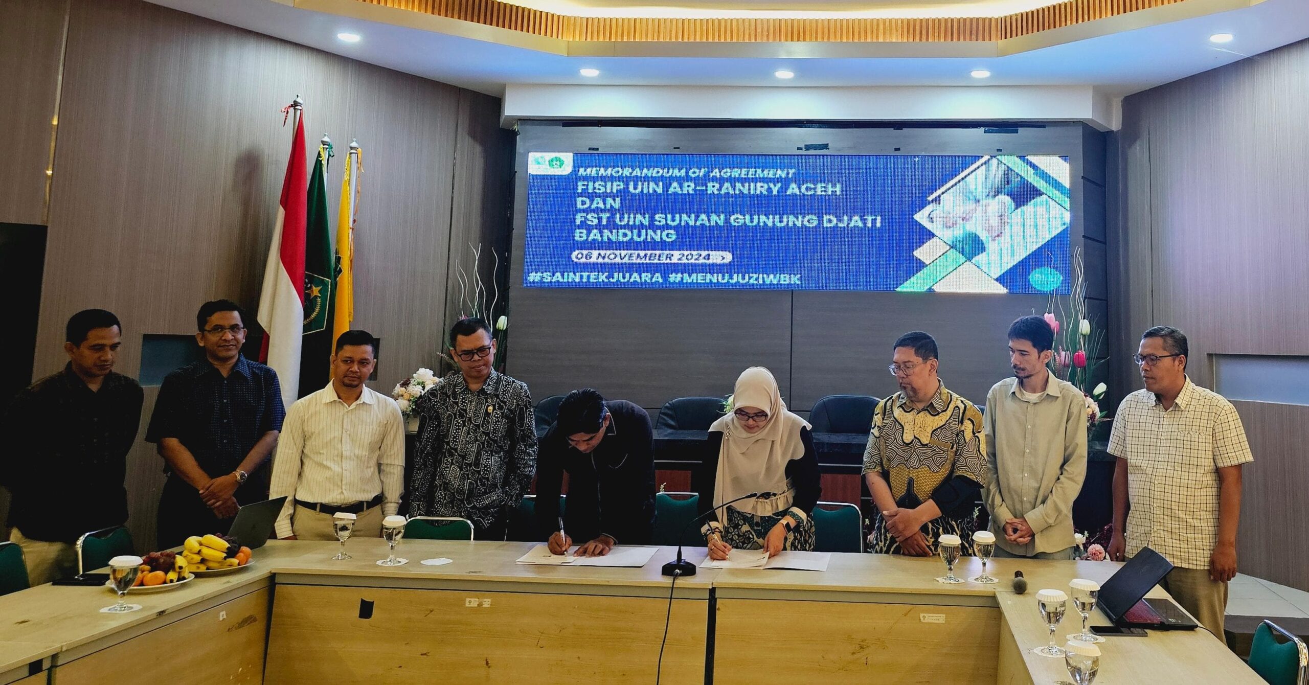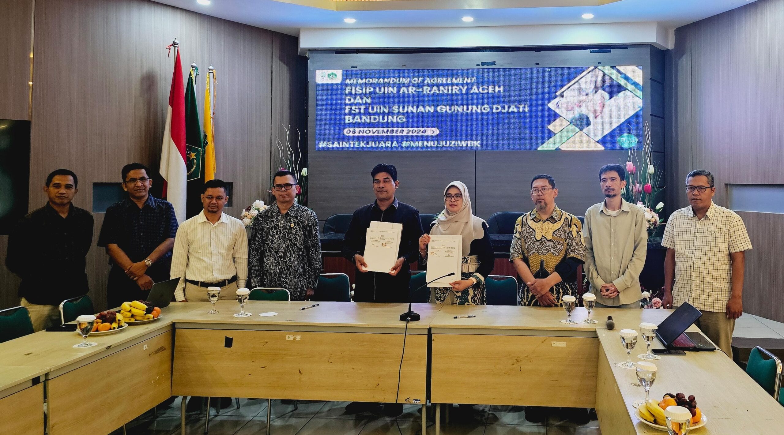Penandatanganan naskah PKS dilakukan antara Dekan FST UIN Bandung Prof. Dr. Hasniah Aliah, M.Si dengan Dekan FISIP UIN Aceh Dr. Muji Mulia, M.Ag.