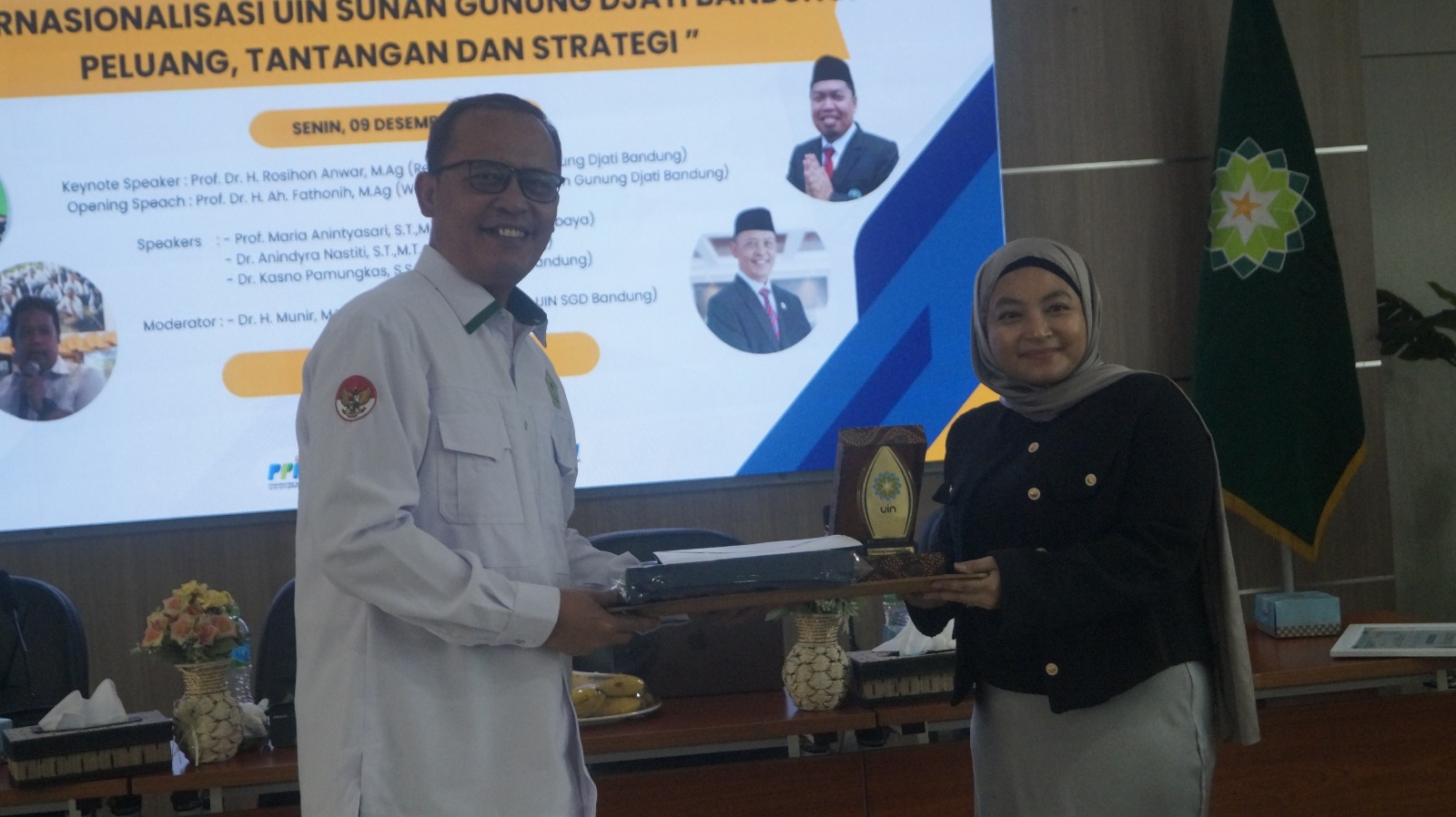 Dengan menghadirkan narasumber Prof. Maria Anintyasari, S.T.,M.Eng., PhD (ITS Surabaya), Dr. Anindyra Nastiti, S.T.,M.T., PhD (ITB Bandung), Dr. Kasno Pamungkas, S.S., M.Hum (Unpad Bandung) dipandu oleh Dr. H. Munir, MA (Kepala International Office UIN SGD Bandung)