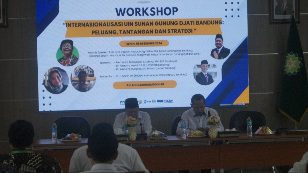 Workshop dibuka oleh Rektor UIN Sunan Gunung Djati Bandung, Prof. Rosihon Anwar, menegaskan internasionalisasi kelembagaan merupakan salah satu dari lima program unggulan UIN Sunan Gunung Djati Bandung yang diangkat dalam rentang lima tahun ke depan (2024-2029).