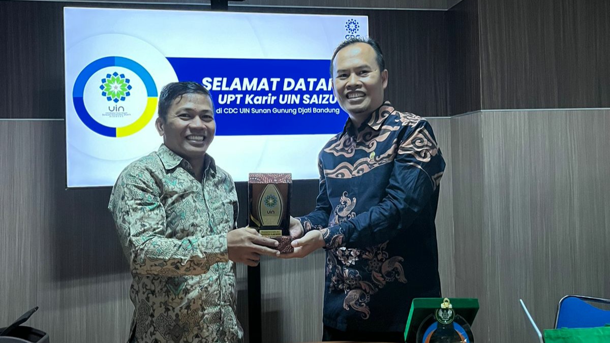 UINSGD.AC.ID (Kampus I) — Kepala Career Development Center (CDC) UIN Sunan Gunung Djati Bandung, Dr. Heri Gunawan, S.Pd.I., M.Ag menerima kunjungan dari Unit Pelaksana Teknis (UPT) Pengembangan Karir UIN Profesor KH Saifuddin Zuhri (UIN Saizu) Purwokerto yang berlangsung di meeting room Kepala Biro, Gedung Al-Jamiah, Rabu (15/5/2024).