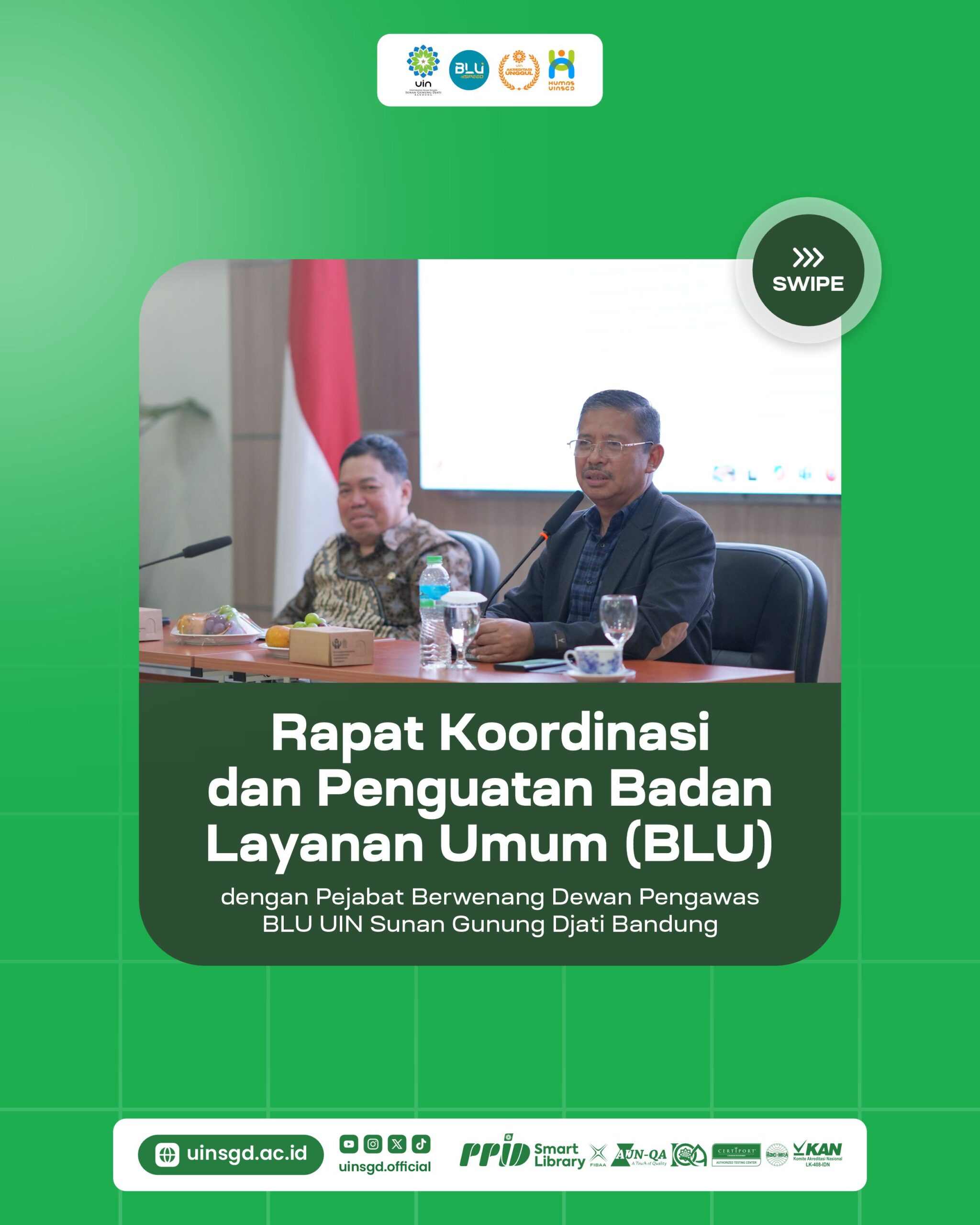 UINSGD.AC.ID (Humas) — UIN Sunan Gunung Djati Bandung menggelar Rapat Koordinasi dan Penguatan Badan Layanan Umum (BLU) dalam rangka meningkatkan tata kelola dan potensi pengembangan kelembagaan, yang berlangsung di Gedung O. Djauharuddin AR, Kamis (7/8/2025).