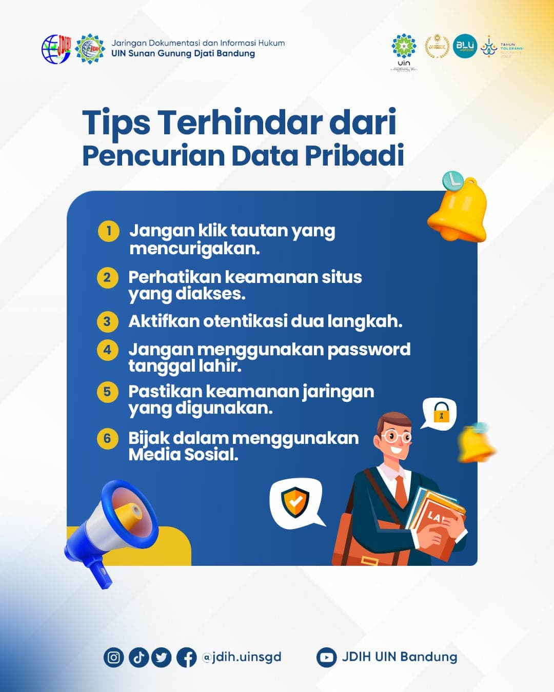 Dapatkan berbagai dokumen dan informasi hukum melalui portal JDIH.UINSGD.AC.ID dan JDIHN.GO.ID.