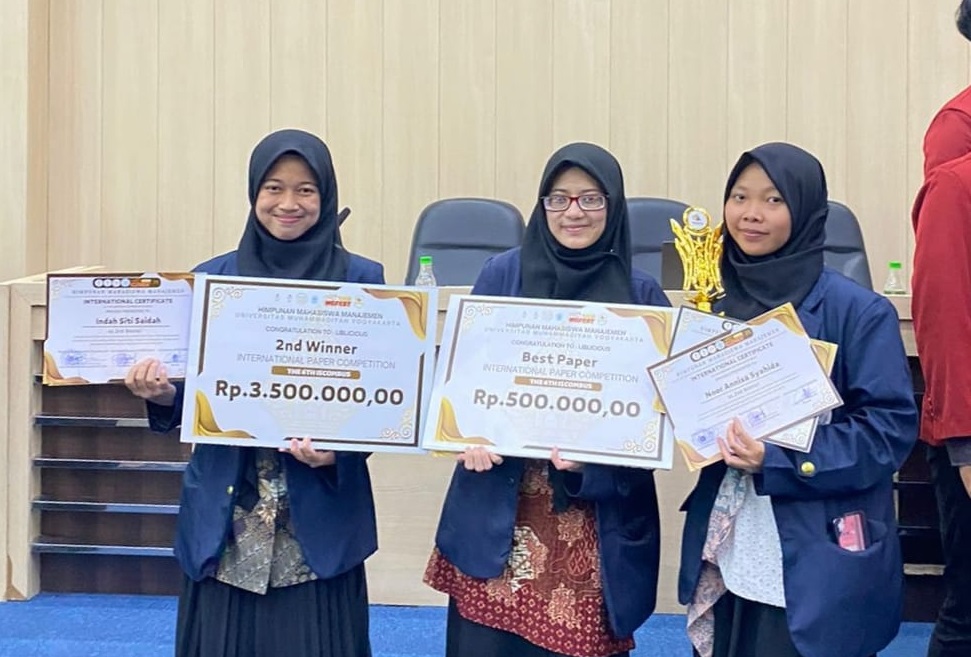 Ketiga sivitas mahasiswa ini melakukan riset kolaborasi lintas fakultas. Paper hasil risetnya memenangkan kejuaraan sebagai 2nd winner kompetisi paper pada 6th ISCOMBUS (International Student Conference on Management and Business Studies) yang diselenggarakan tahunan oleh Universitas Muhammadiyah Yogyakarta.