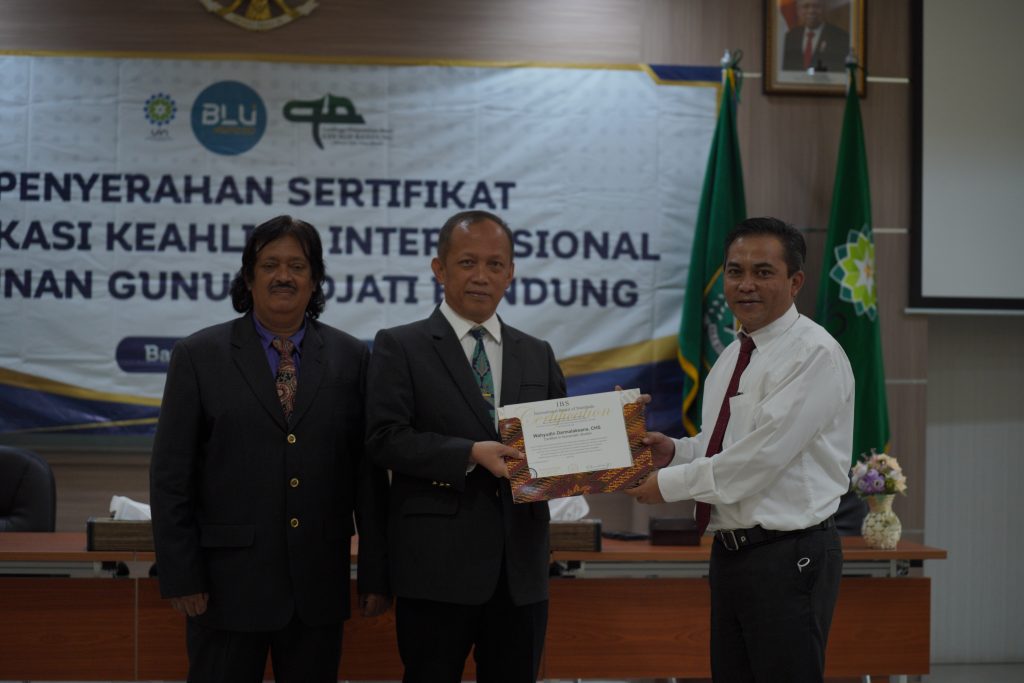 (UINSGD.AC.ID)-Sebanyak 58 dosen Universitas Islam Negeri (UIN) Sunan Gunung Djati Bandung dinyatakan lolos uji kompetensi internasional yang diselenggarakan oleh International Boards of Standars (IBS), anggota American Academy yang bergabung bersama CHEA International Quality Group. Dua orang di antaranya merupakan instruktur moderasi beragama tersertifikasi internasional (CRMI), yaitu Dr. Mulyana dan Dr. Rifki Rosyad.
