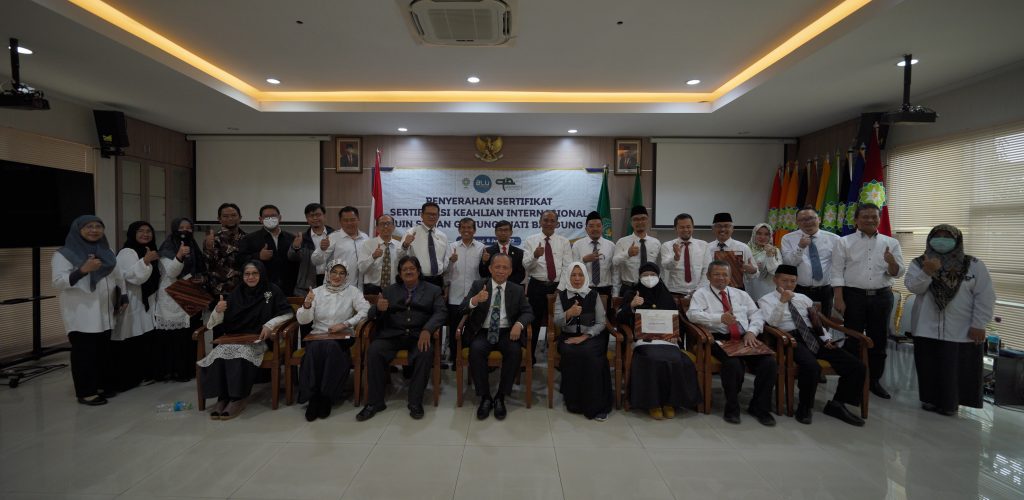 Sertifikat kompetensi diserahterimakan langsung oleh Rektor UIN Bandung, Prof Dr H Mahmud, MSi CSEE didamping Presiden Chapter Asia Pasific, Prof Fauzi Hasan yang berlangsung di Gedung O Djauharuddin AR, Bandung, Selasa (06/06/2022).