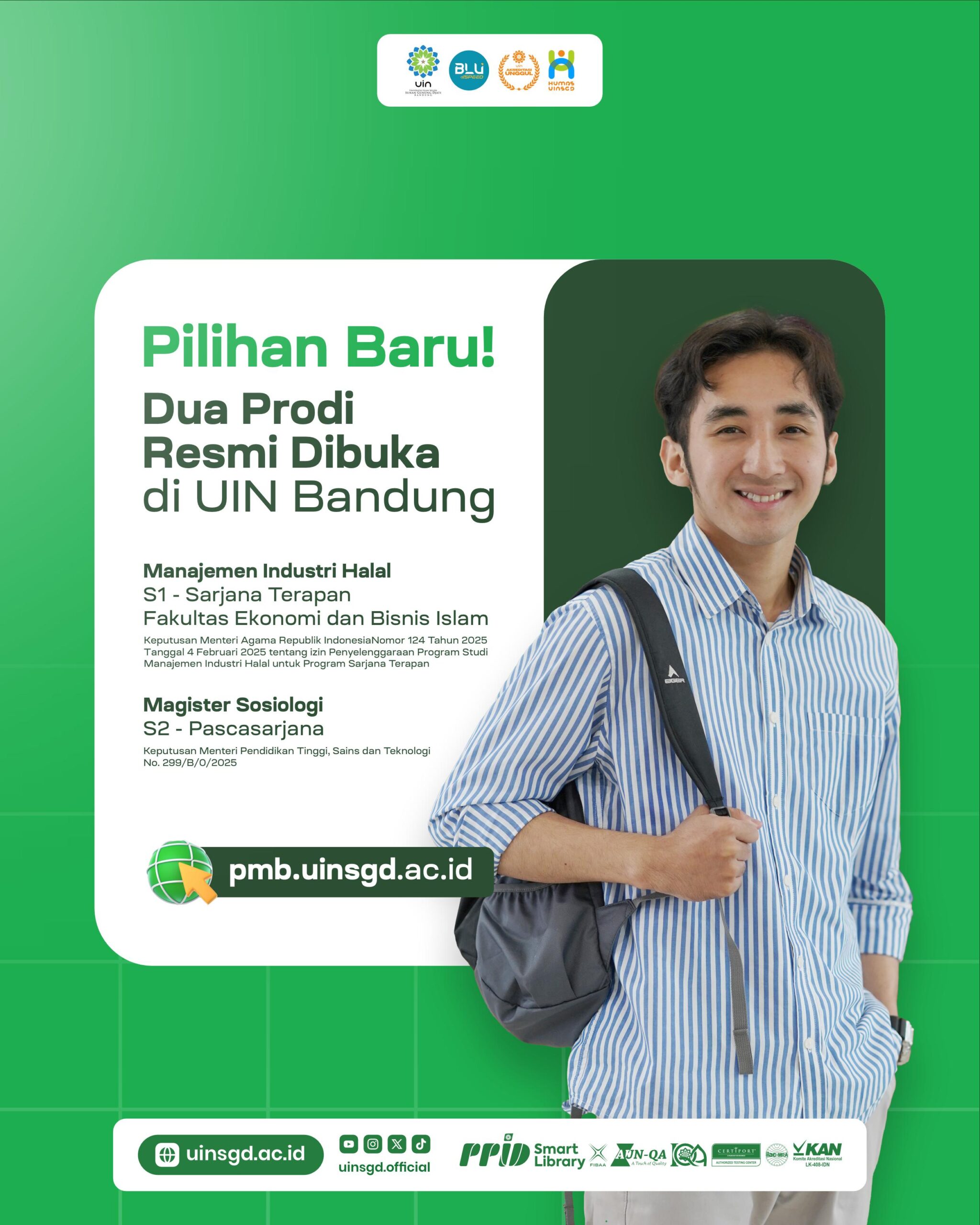 Pendaftaran mahasiswa baru untuk kedua program ini dapat diakses melalui laman resmi: pmb.uinsgd.ac.id