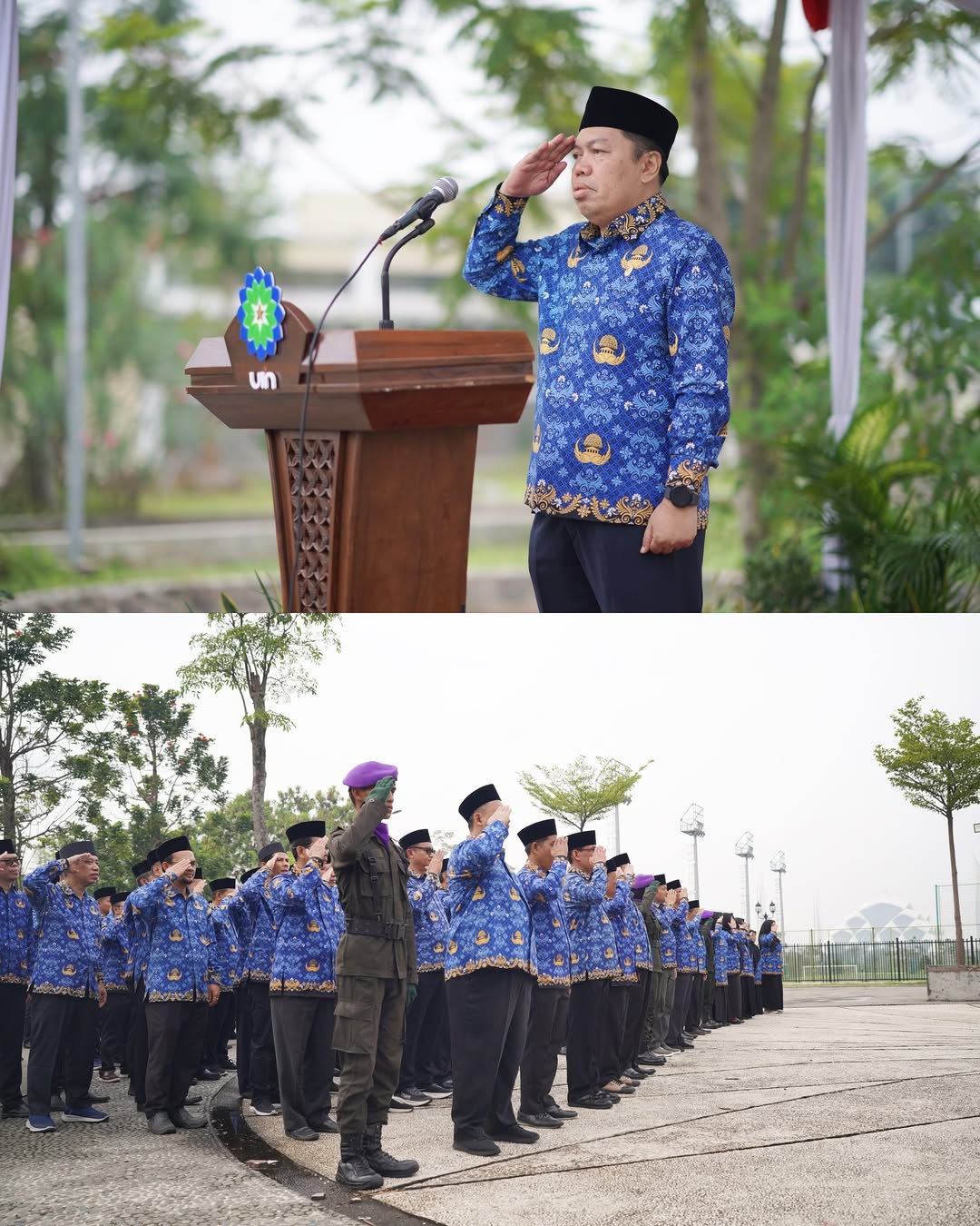 Pada kesempatan ini, Rektor Prof. Dr. H. Rosihon Anwar, M.Ag bertindak sebagai Inspektur Upacara menyampaikan pidato Menteri Pemuda dan Olahraga Republik Indonesia, Erick Thohir.