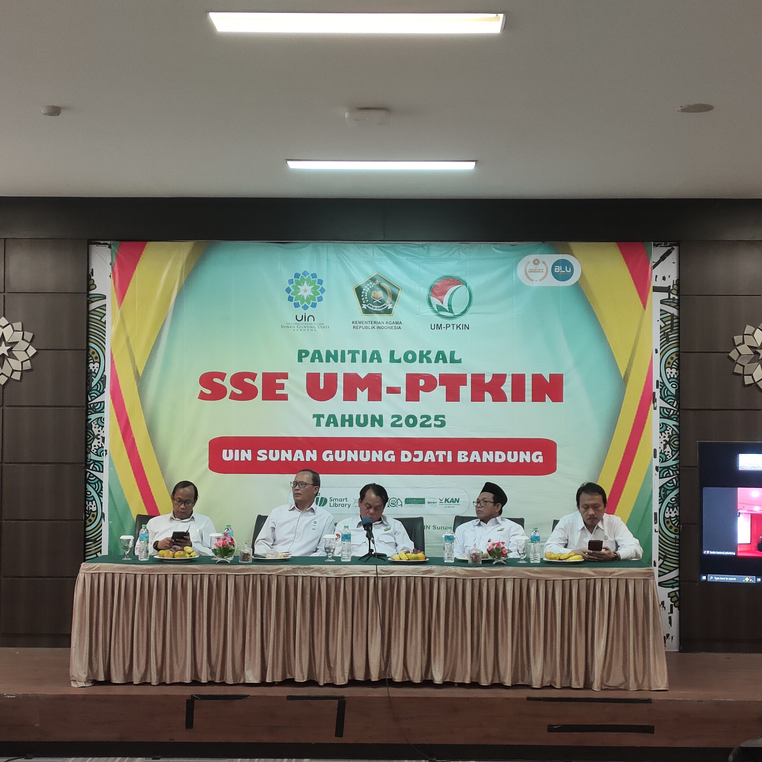 Hadir dalam pembukaan SSE UM-PTKIN 2025, Wakil Rektor IV Prof. Dr. Ah. Fathonih, M.Ag., Plh Kepala Biro AUPK (Administrasi Umum, Perencanaan, dan Keuangan) H. Edy Fuady, M.Pd., para Dekan di lingkungan UIN Sunan Gunung Djati Bandung, Ketua PTIPD, Mohammad Irfan, S.T, M.Kom, Ph.D., Kepala Bagian Akademik, Jajang Burhanudin, S.Ag., SS., M.Hum.,