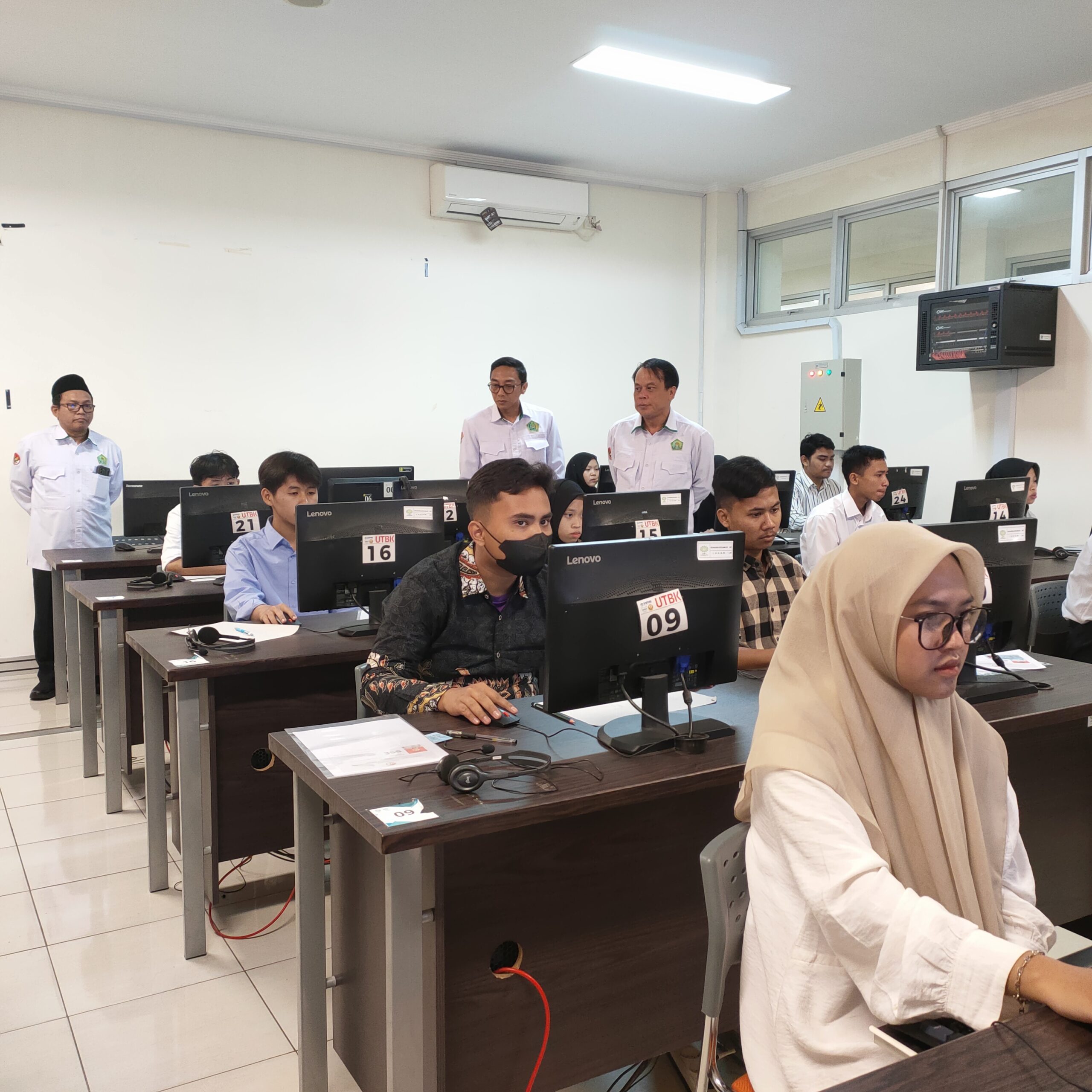 Pelaksana Harian (Plh.) Rektor, Prof. Dr. Tedi Priatna, M.Ag., Plh. Wakil Rektor I, Prof. Dr. Husnul Qodim, M.A., didampingi Kepala Pusat dan Sekretaris PMB, Dr. M. Erihadiana, M.Pd. dan Aldy Riyaldi Atmadja, M.T., menyampaikan bahwa pelaksanaan ujian dilakukan di Laboratorium Pusat Teknologi Informasi dan Pangkalan Data (PTIPD) Lecture Hall Kampus I UIN Bandung.