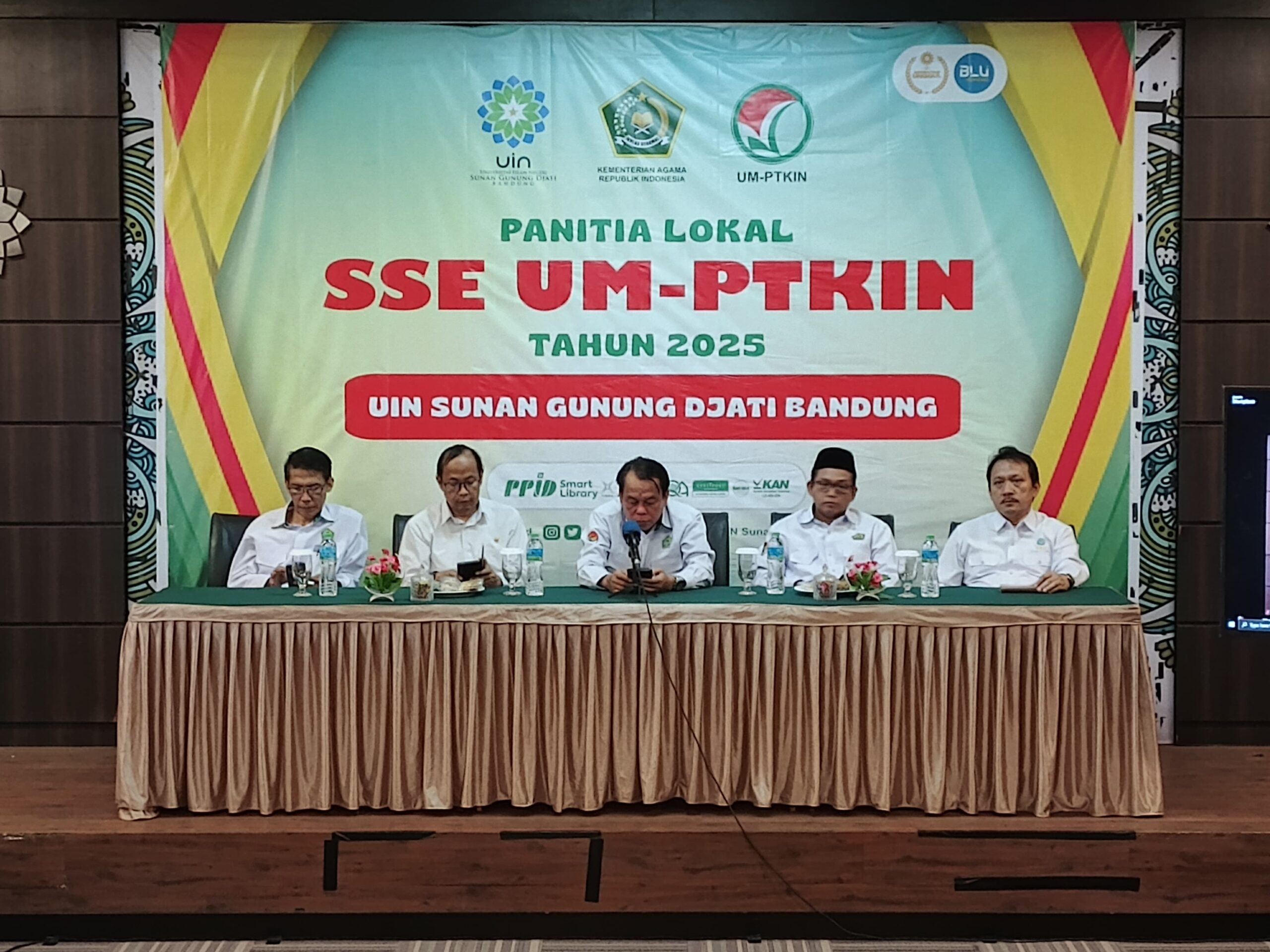 Hadir dalam pembukaan SSE UM-PTKIN 2025, Wakil Rektor IV Prof. Dr. Ah. Fathonih, M.Ag., Plh Kepala Biro AUPK (Administrasi Umum, Perencanaan, dan Keuangan) H. Edy Fuady, M.Pd., para Dekan di lingkungan UIN Sunan Gunung Djati Bandung, Ketua PTIPD, Mohammad Irfan, S.T, M.Kom, Ph.D., Kepala Bagian Akademik, Jajang Burhanudin, S.Ag., SS., M.Hum.,