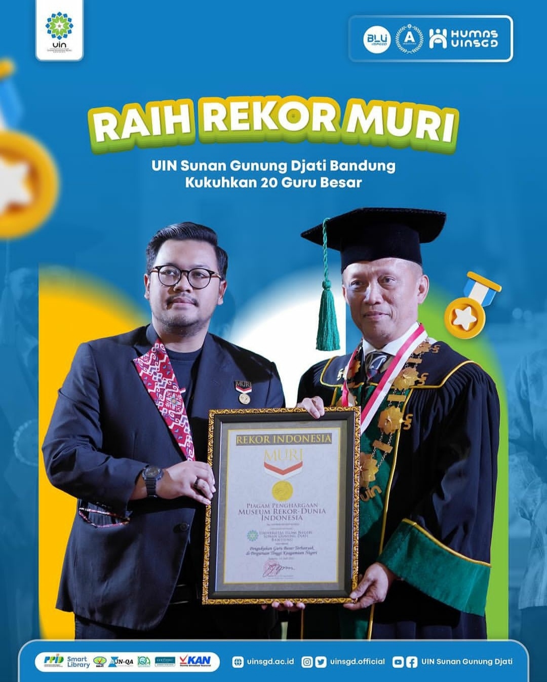 UIN Sunan Gunung Djati Bandung Kukuhkan 20 Guru Besar, Raih Rekor MURI