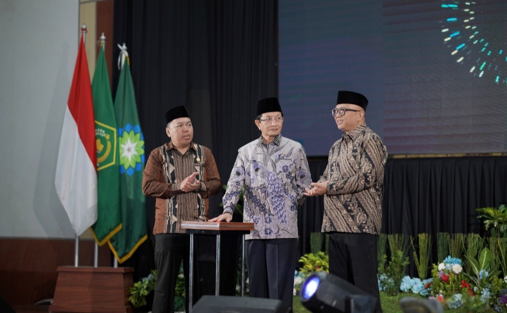 UINSGD.AC.ID (Humas) — Menteri Agama Nasaruddin Umar, didampingi Sekretaris Dirjen Pendis Arskal Salim dan Rektor UIN Sunan Gunung Djati Bandung Rosihon Anwar, resmi melaunching Pusat Kajian SANTRI (Sentra Analisis dan Riset Pesantren Indonesia).