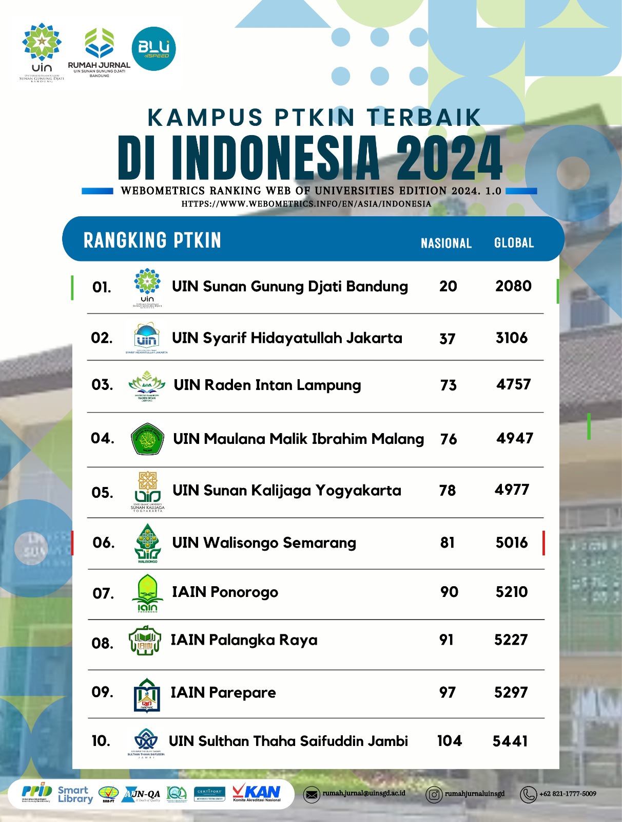 Berikut adalah daftar lengkap 10 PTKIN terbaik di Indonesia versi Webometrics 2024: