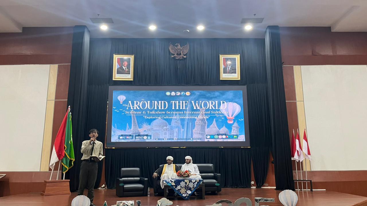 UINSGD.AC.ID (Humas) — Unit Kegiatan Mahasiswa (UKM) Lembaga Pembinaan Bahasa (LPB) UIN Sunan Gunung Djati Bandung kembali menyelenggarakan kegiatan tahunan bertajuk Around the World 2025, yang dilaksanakan di Aula Pendidikan Profesi Guru (PPG) Kampus 2 UIN Bandung, Kamis (27/11/2025)