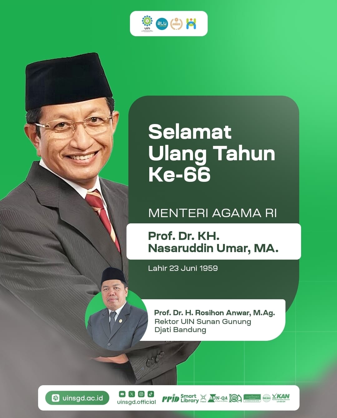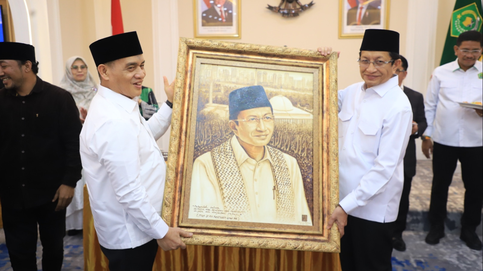 UINSGD.AC.ID (Humas) — Menteri Agama Nasaruddin Umar menyampaikan refleksi mendalam pada silaturahmi bersama Wakil Menteri Agama, Romo H. R. Muhammad Syafi’i, Sekjen Kemenag, Kamaruddin Amin beserta jajaran pejabat Eselon I, II, dan III Kementerian Agama. Momen ini terasa istimewa karena bersamaan hari ulang tahun ke-66 Menteri Agama.